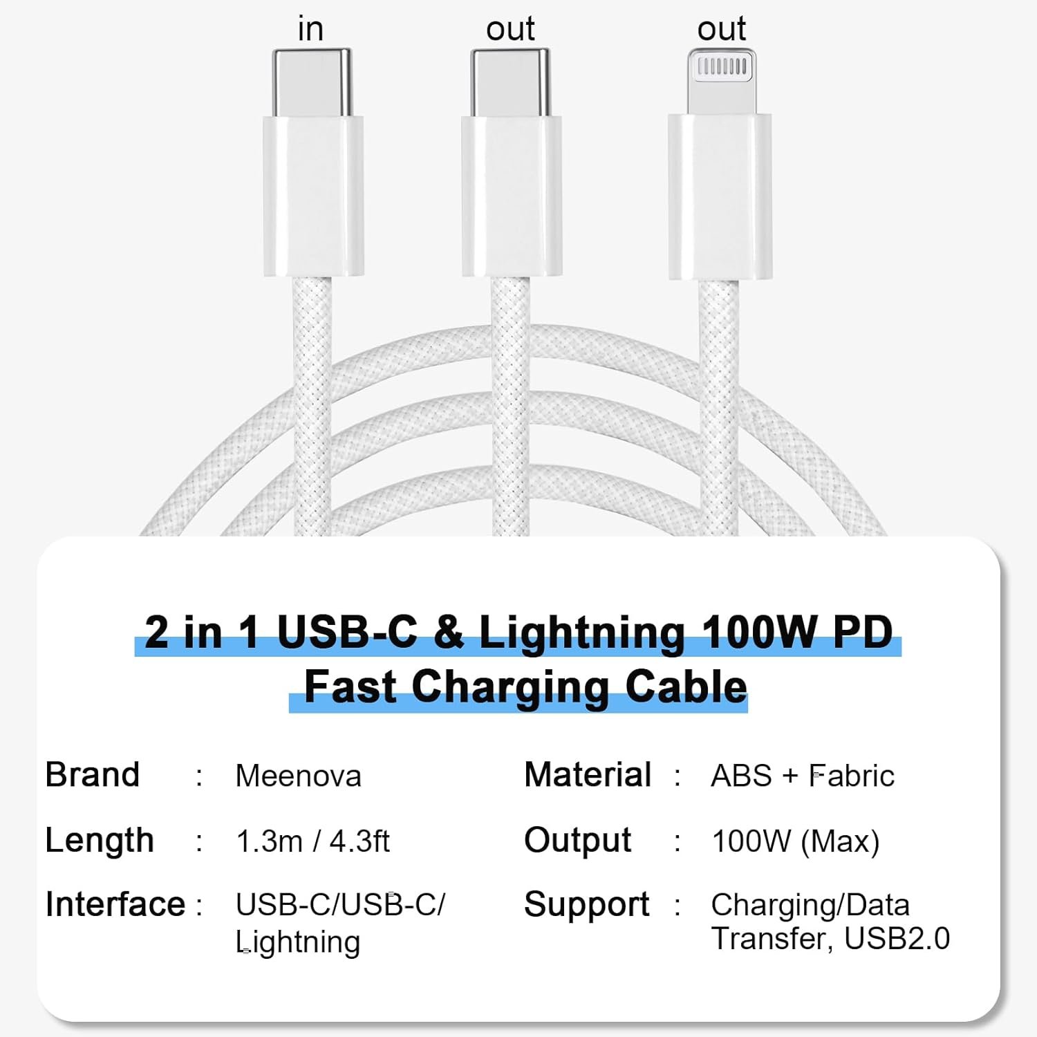 Meenova 2 in 1 USB C to USB C and Lighnting Cable 100W, 4.3ft