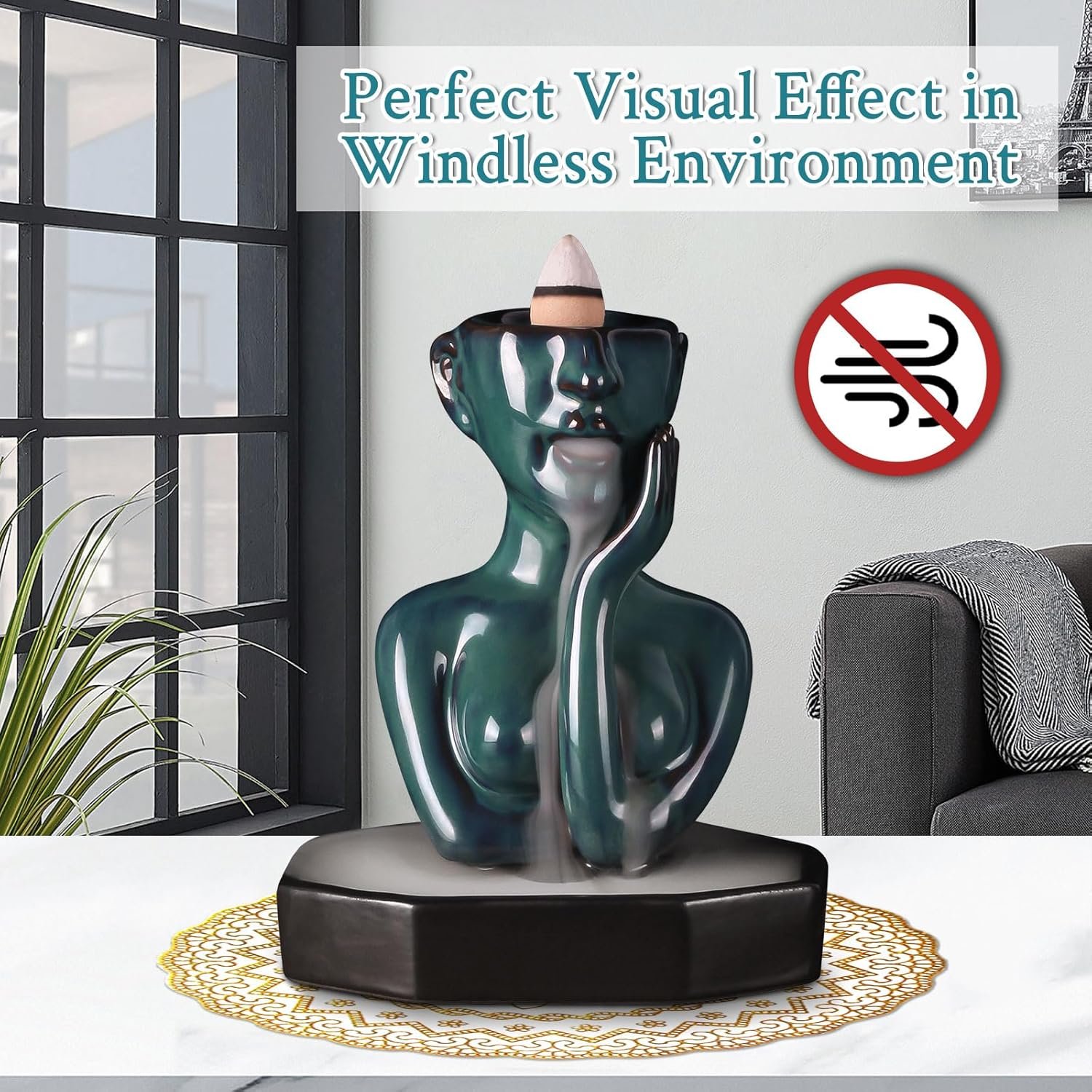 【Unique Design】The waterfall incense burner is made of ceramic, which is thick, sturdy and durable. It is a ceramic sculpture of a woman thinking.The figure of the woman as well as the colors that are used give it an artsy feel.When you light the incense cones, it creates a captivating visual effect resembling a natural fountain waterfall.