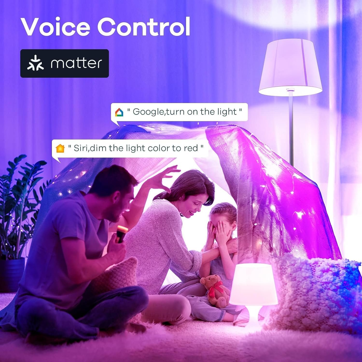 【Voice & Group Control】You can control the e26 led bulbs with voice commands, and use any Matter APP/Linkind’s Aidot APP to change colors at any time. Easily add multiple led light bulbs that can be controlled together at the same time (please use a stable 2.4 GHz WiFi).