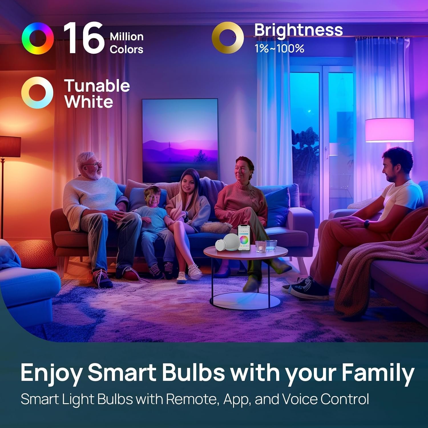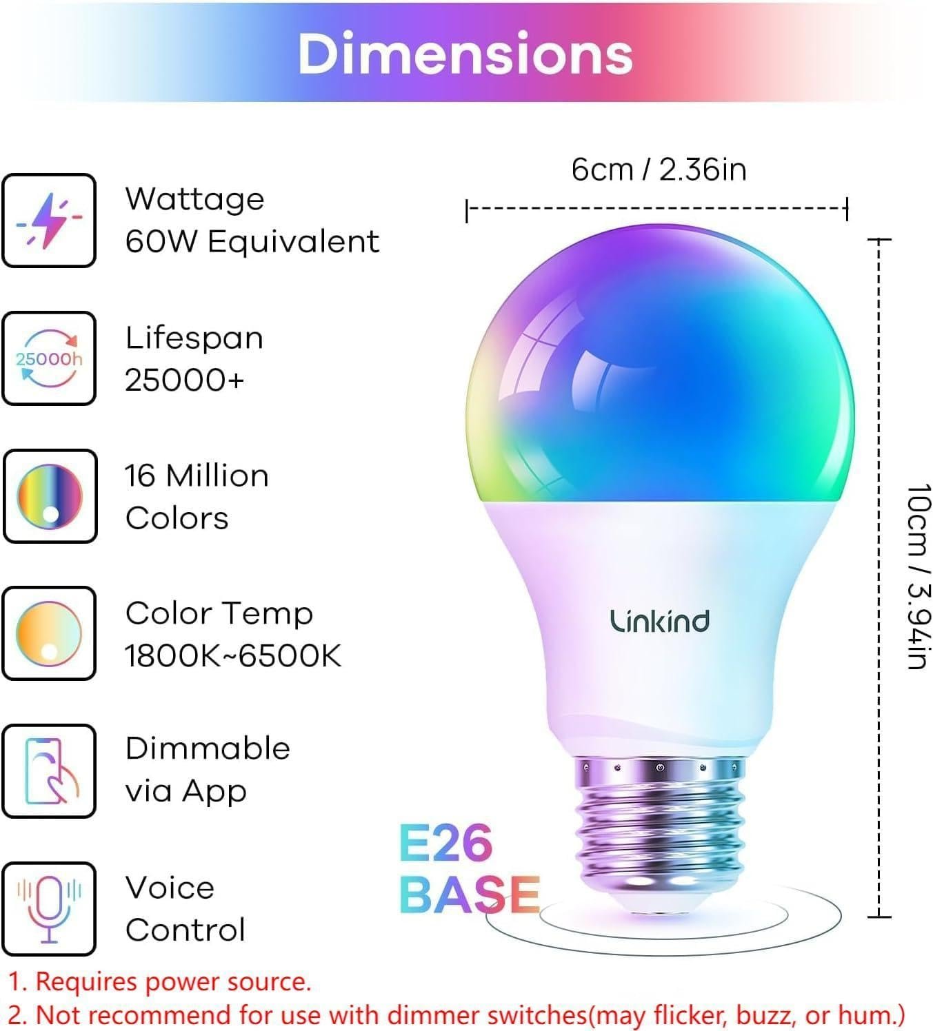 💡[Color Changing Smart Light Bulbs] Linkind smart bulb provides 16 millions color, colorful your life. 1800K soft white to 6500K cool white as daily lighting.