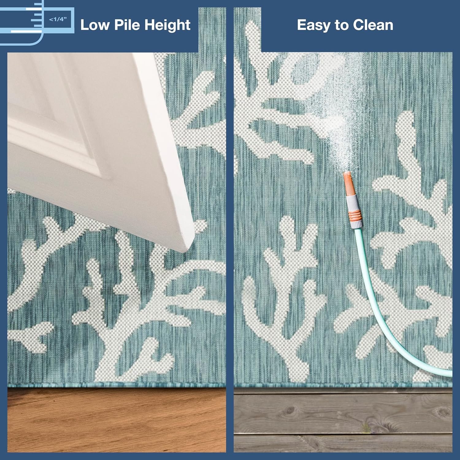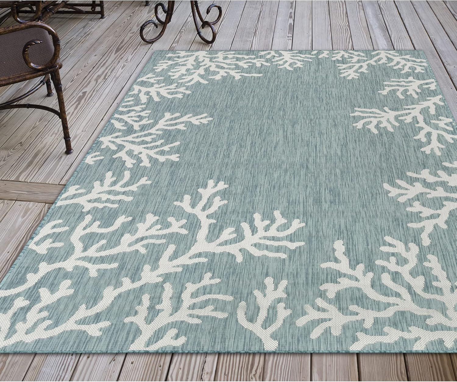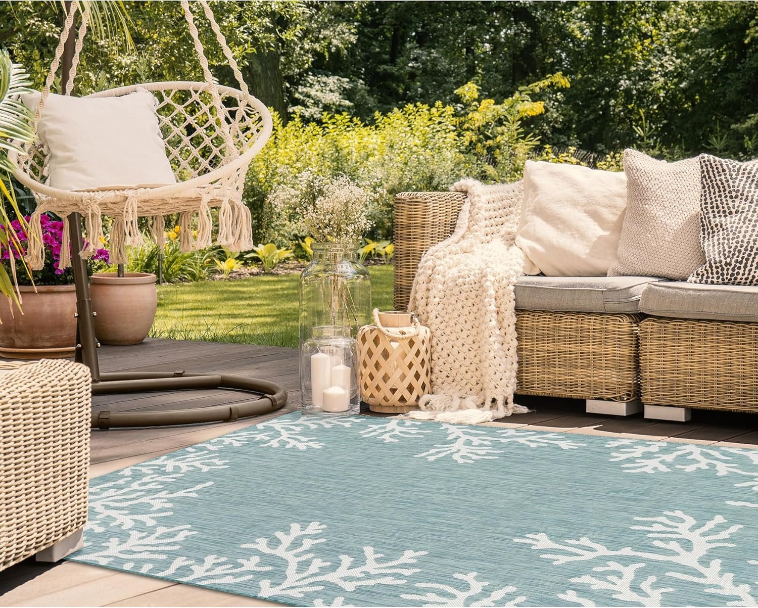 COMFORT & DURABILITY: Constructed for longevity, this coral styled rug is Power Loomed with weather-resistant polypropylene and UV stabilized to reduce fading. Reduce exposure to rain, moisture, and direct sun to prolong the mats life.