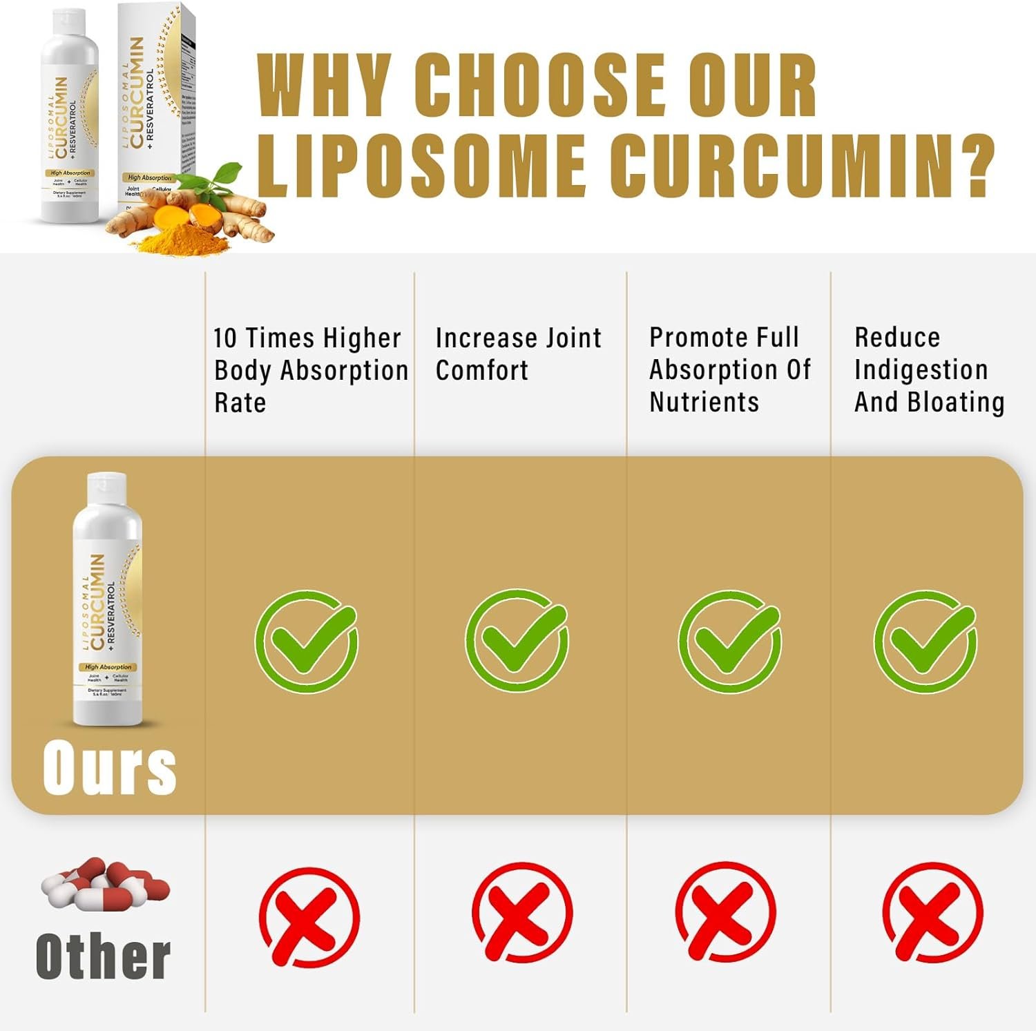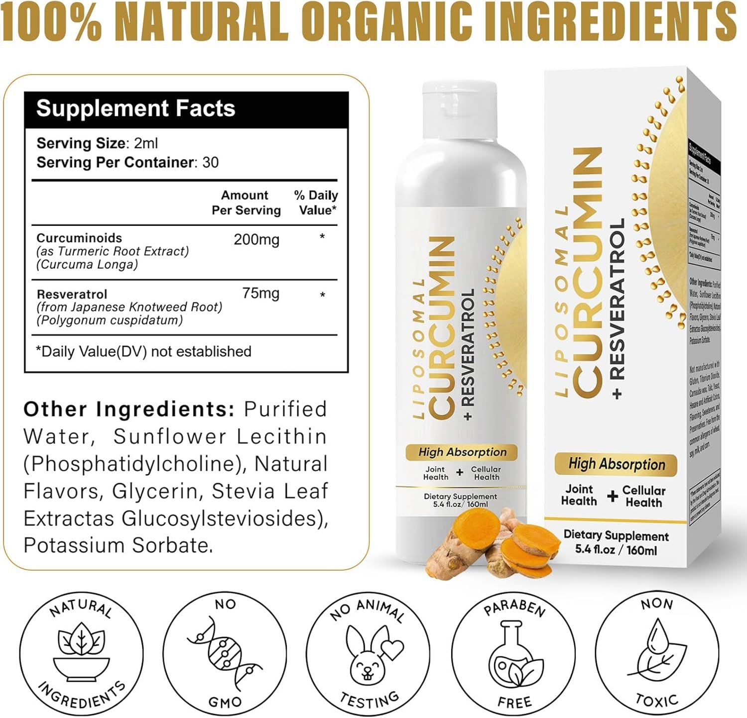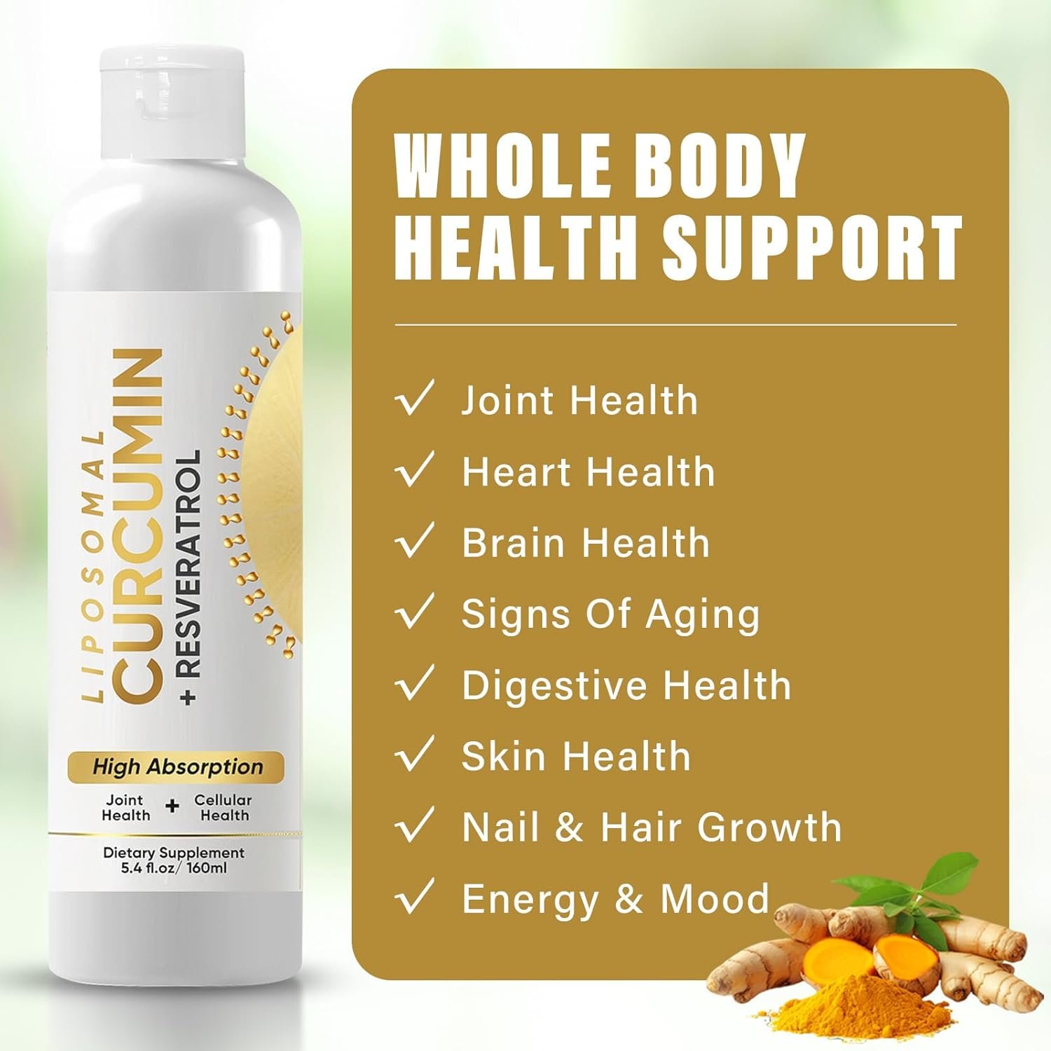 Liposomal Curcumin, Turmeric Curcumin Supplement, Standardized Curcuminoid Extract, High Absorption Liquid Turmeric Supplement, Joint Comfort & Cellular Health Support for Adults