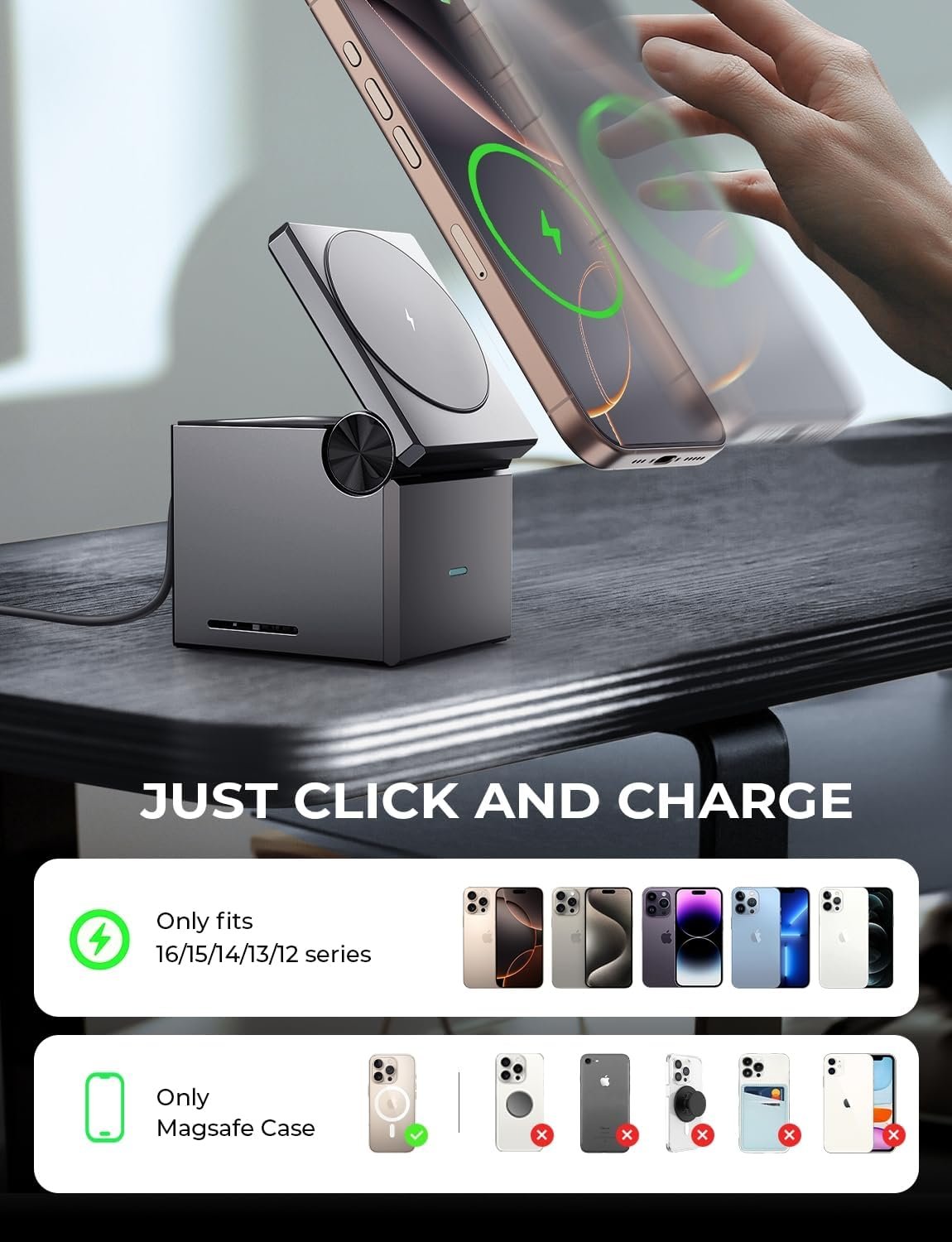 Sturdy and Stable Base: The charger’s grippy base and satisfying weight provide stability and peace of mind, keeping your devices securely in place while they charge.