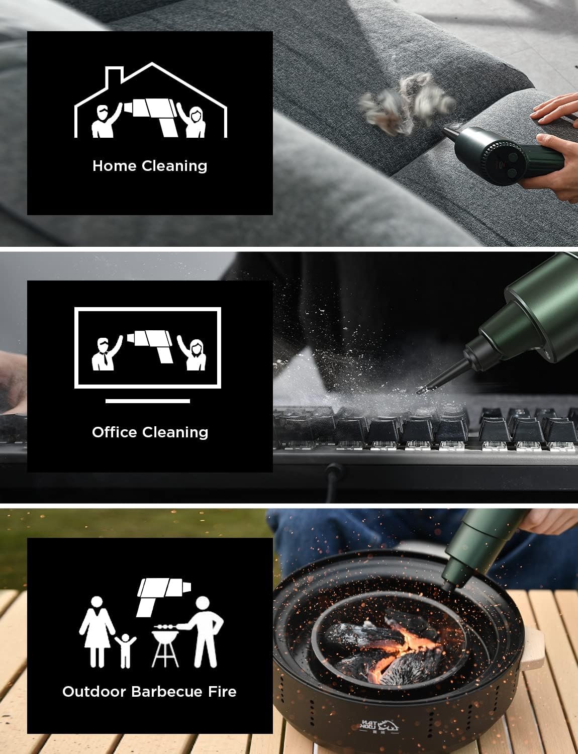 [Eco-Friendly Green Cleaning] As a green cleaning tool, the air duster is an environmentally friendly choice that helps reduce waste and minimize the use of harmful chemicals. By using the power of air to clean, it provides an effective and safe cleaning solution that is gentle on both the environment and the user.