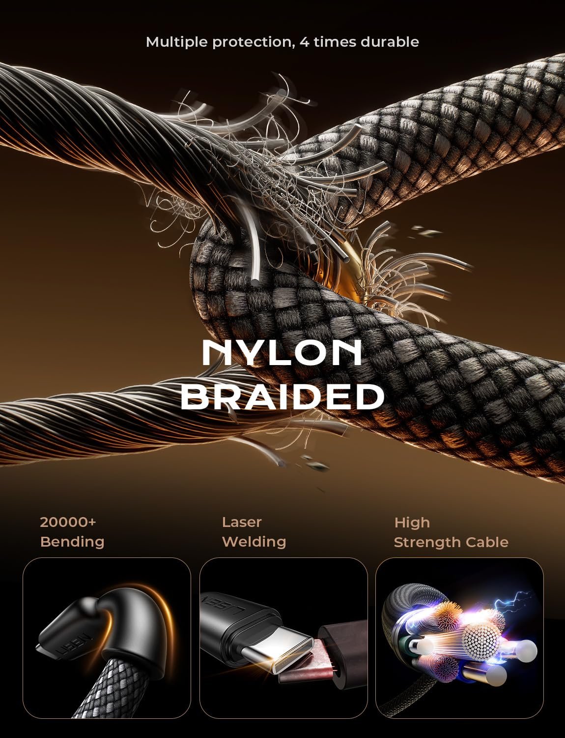 Absolutely! This cable is designed for durability, with a 48-strand braided nylon exterior that resists wear and tear. The connectors are reinforced with ABS material and are tested for over 10,000 bends, making it perfect for daily charging needs without worrying about damage.
