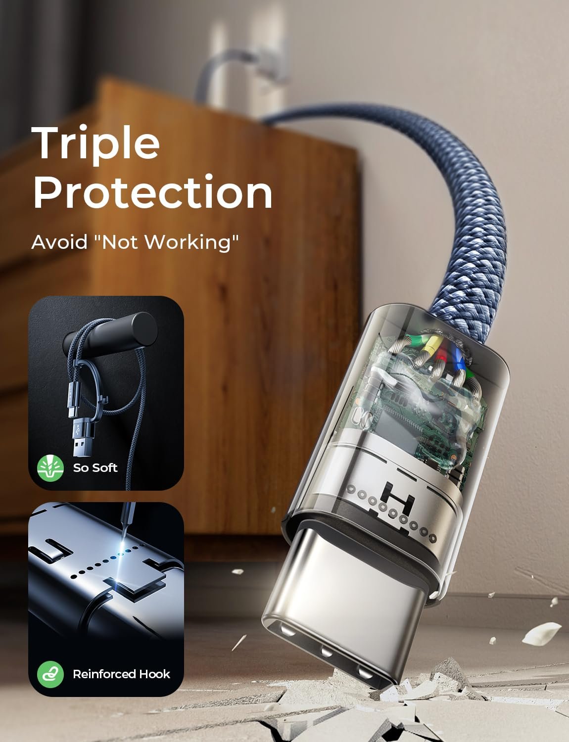 UPGRADED 10X DURABLE: Laser welding technology is used in fast charger usb type c cable to prevent metal sections from breaking. Cable durability is improved by the extra-long rubber-sleeved SR breakout design. With over 40,000 bend tests passed, this Double Braided Nylon Ultra Fast Charger Type-C Cable provides exceptional durability and flexibility
