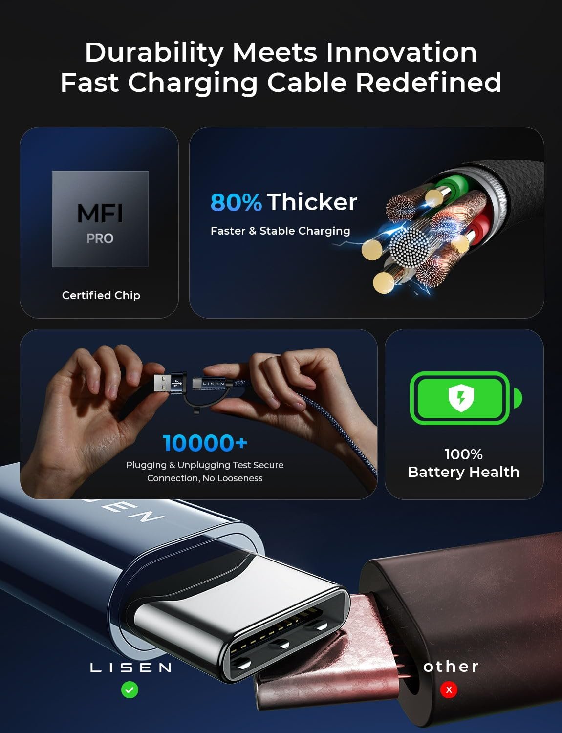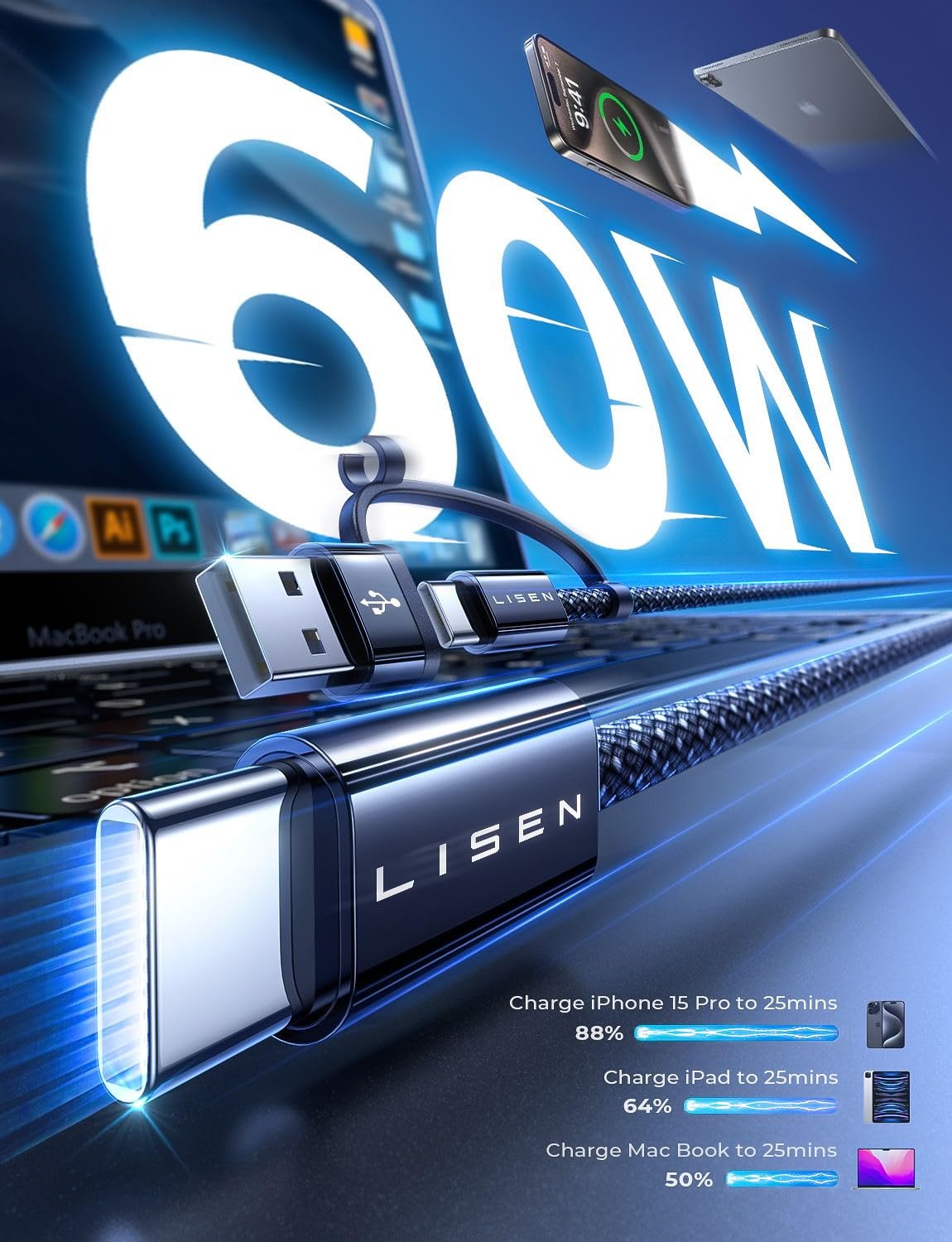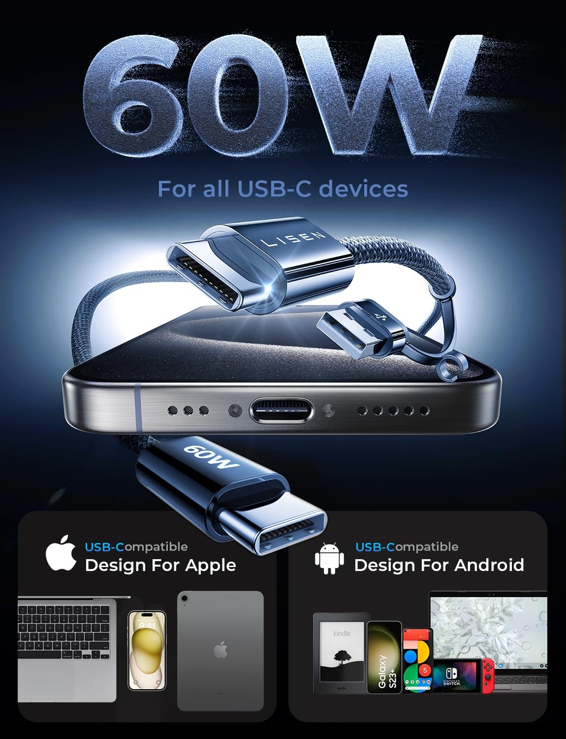 Be the first to review “LISEN USBC to USBC Cable 3Pack [3.3ft+3.3ft+6.6ft] 60W Fast Charging USB A to USB C Cable for iPhone 15 CarPlay Cable Braided TypeC Charger Cable for iPad Pro Samsung S24 Ultra Android MacBook”