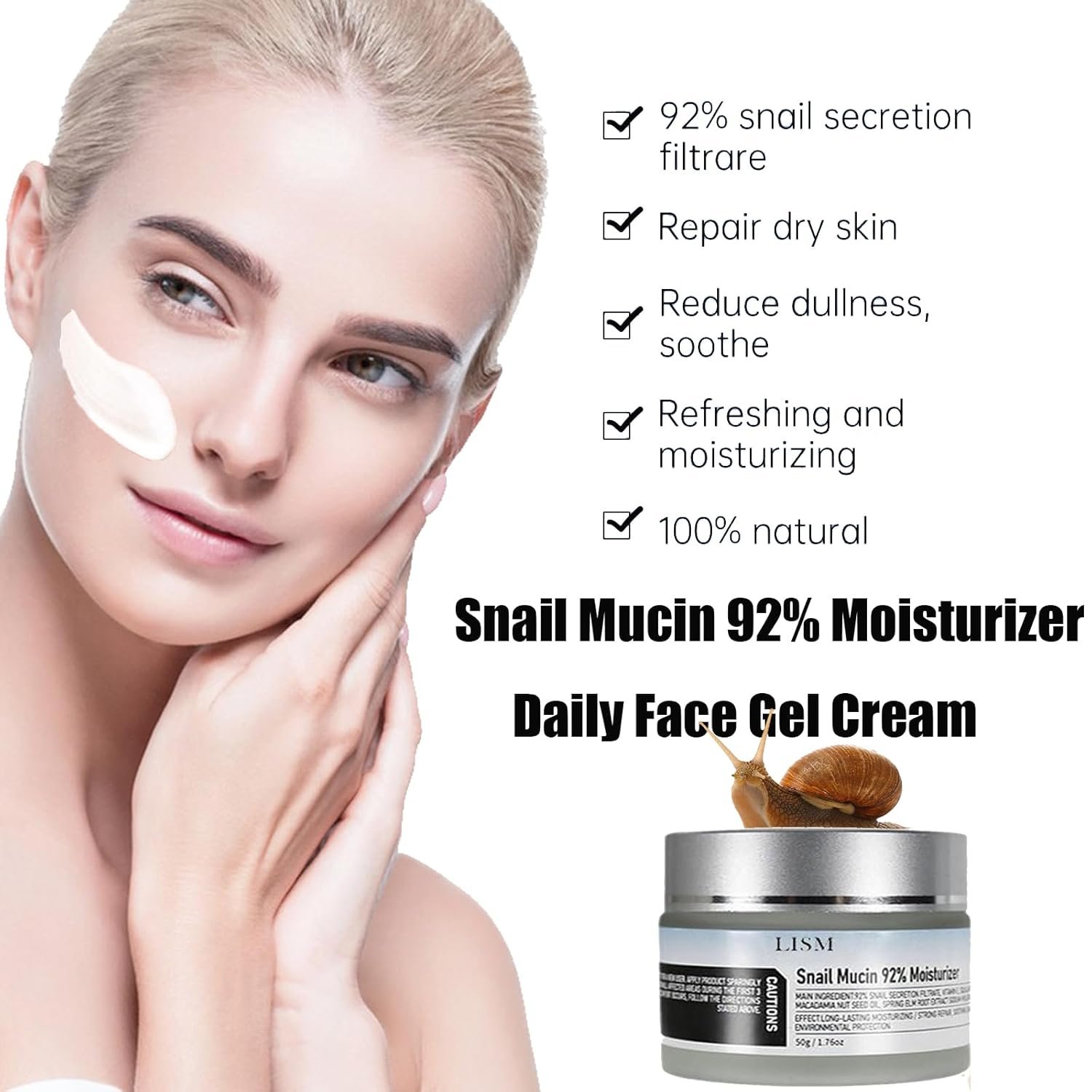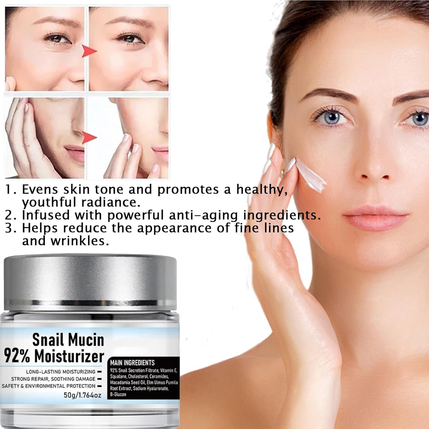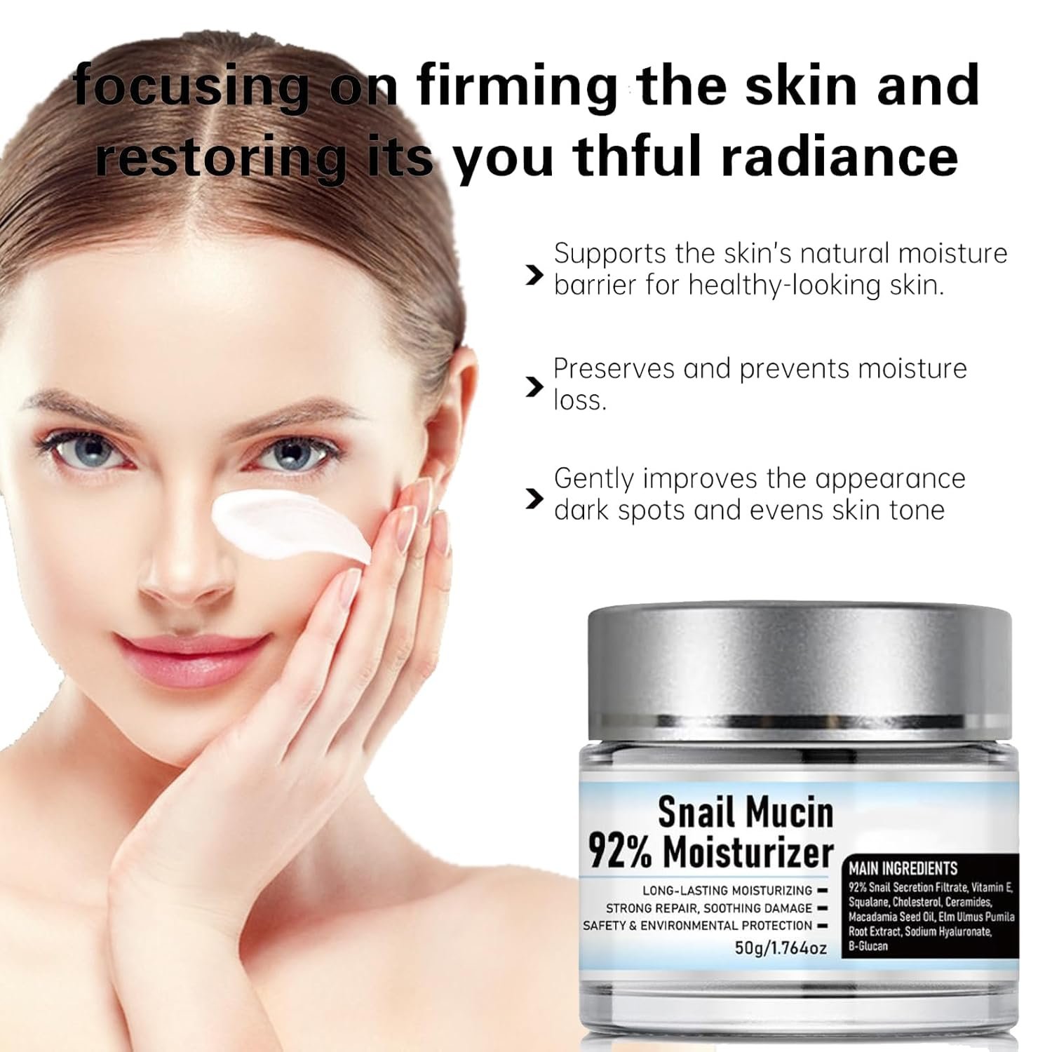 【Snail Mucin Moisturizer】This snail mucin 92% moisturizer cream contains 92% snail secretion filtrate to improve skin vitality by reducing dullness and soothing dehydrated skin.