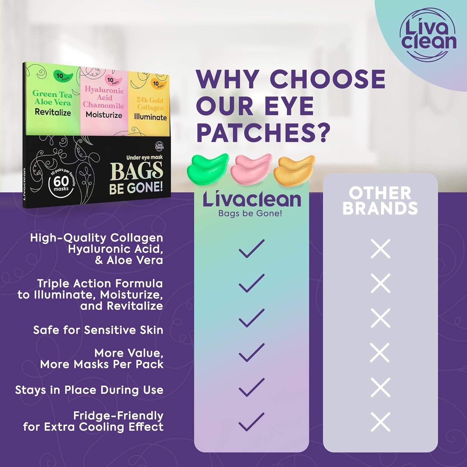 Experience the Ultimate De-Puffing Effect – With our under eye gel pads. They target and reduce under-eye puffiness, helping you look awake and refreshed. Many users notice a significant difference in just one use, making them a morning must-have.