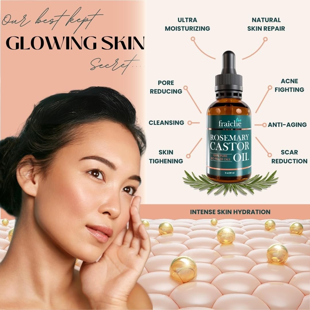 GREAT FOR YOUR SKIN: who doesn’t love an all purpose oil? Our rosemary castor oil can also be used as a natural skin moisturizer, rich in antioxidants, it helps to protect and smoothen your skin, reducing the appearance of lines. It can lock in hydration into the skin when applied post-shower. It also enhances skin elasticity to diminish stretch marks and can be used as a massage oil to relax your muscles.