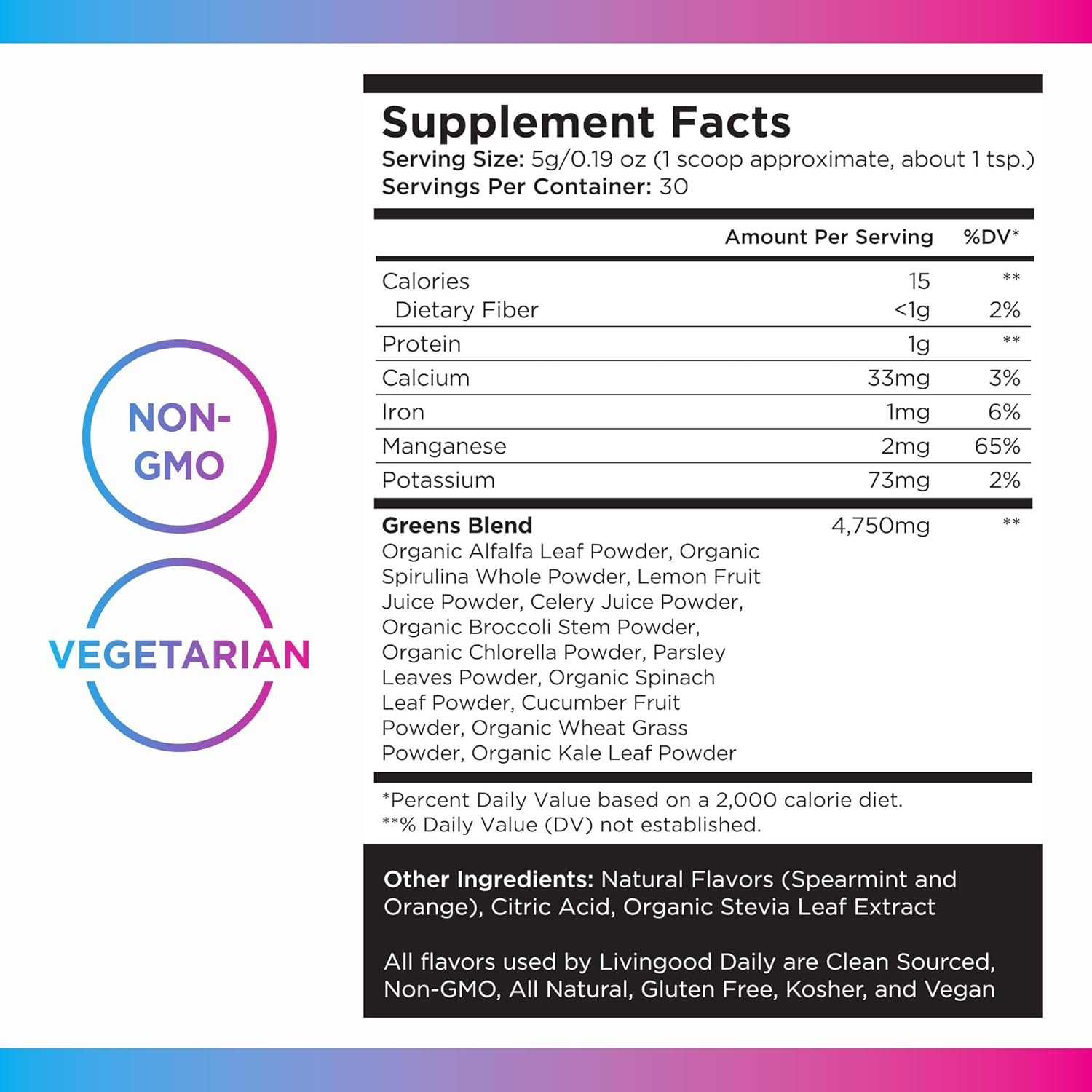 Works With Any Lifestyle: Livingood Daily Greens Powder is free of GMOs, making it easy to incorporate into any health journey.