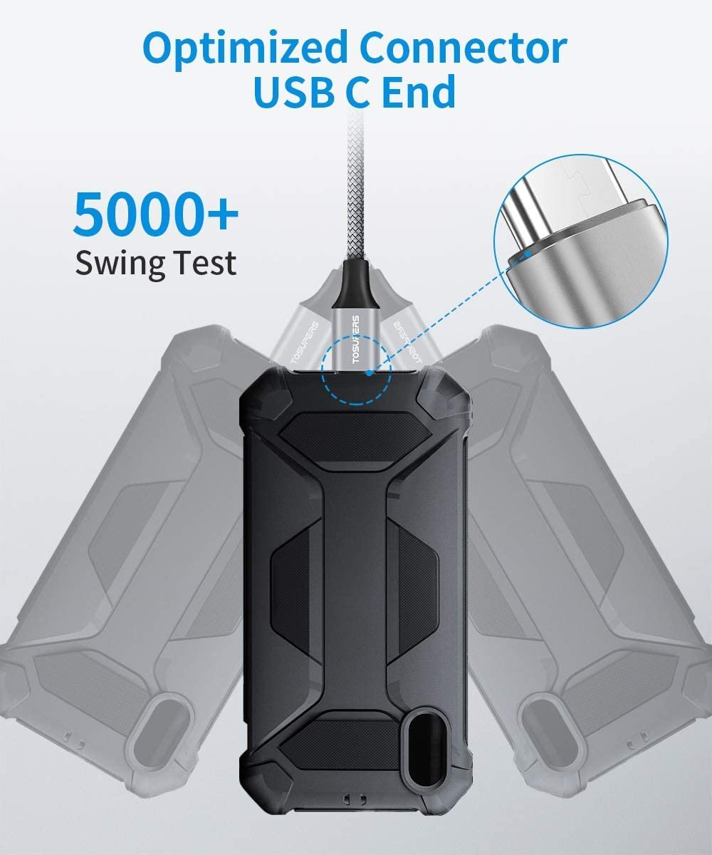 8FT PEFECT LTNGTH & TIGHT FIT IN PHONE: TOSUPERS 8ft USB Type C Cable are perfect for charging in most occasions – home, outdoor, office, car or bedroom. Improved connector tip, fits well, holds firmly, which can through out most phone case and Not easy fall out of the phone even if in a shaking car.