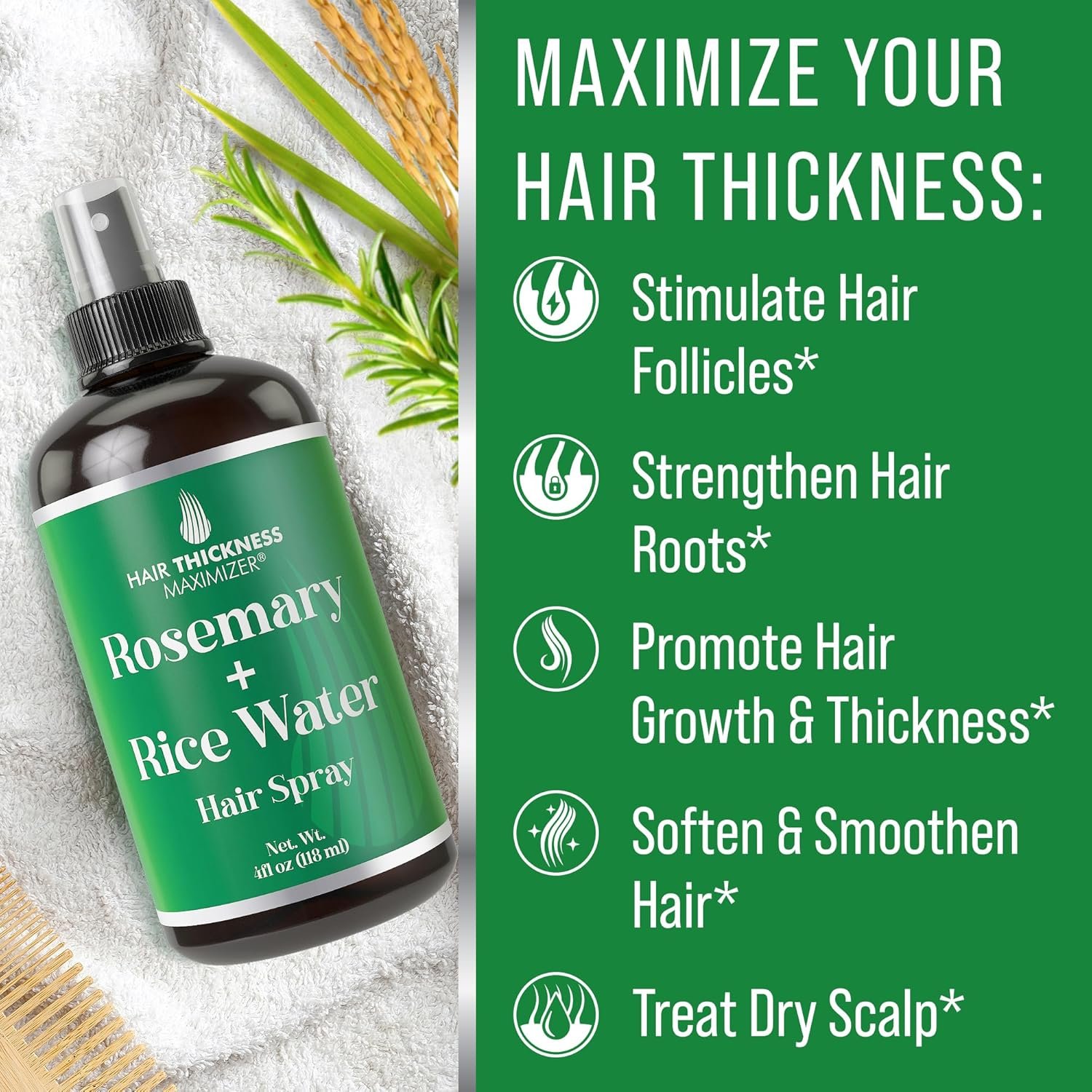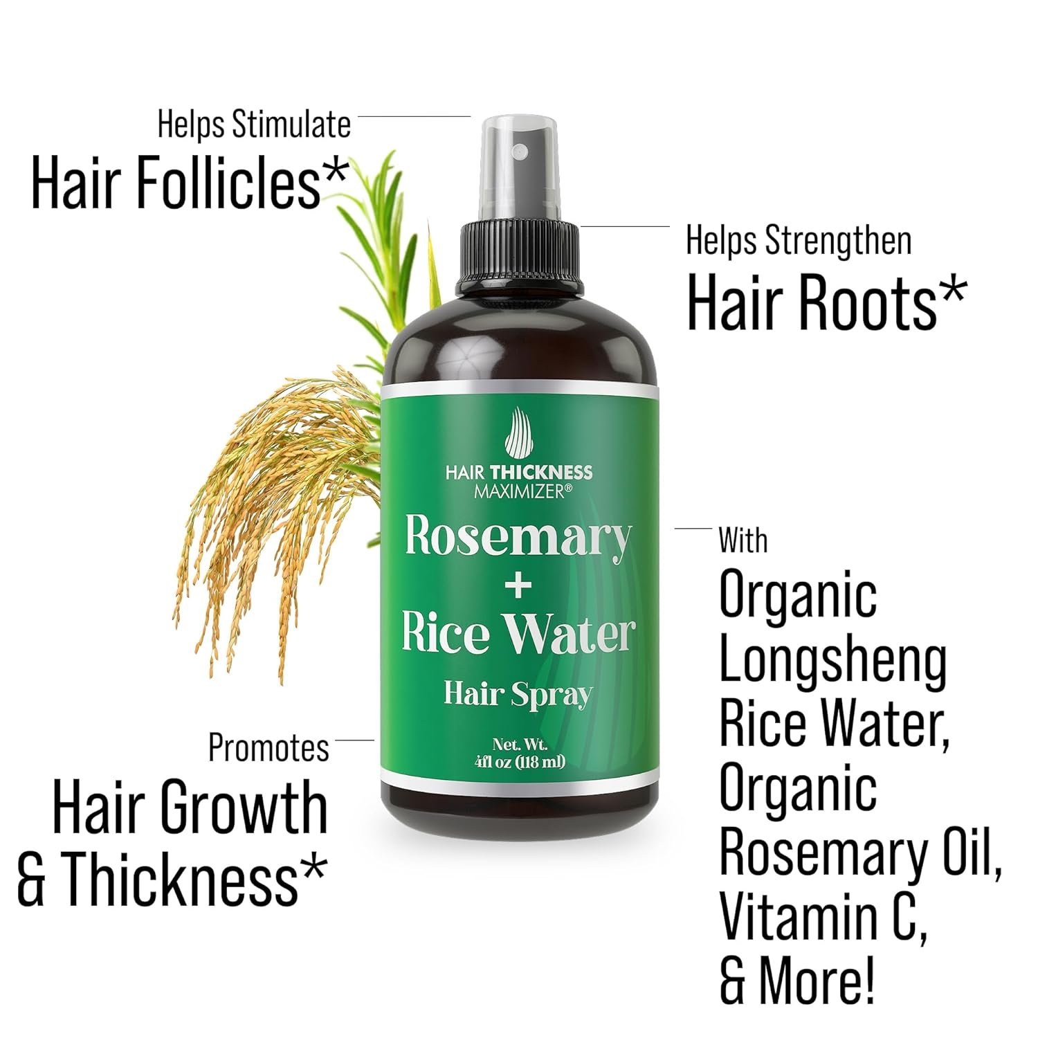 2-in-1 – Get 2 of the best hair ingredients in 1! We combined Organic Longsheng Rice Water with Organic Rosemary Oil to create the ultimate hair growth spray. Hair Thickness Maximizer is a USA brand and we created a non-toxic, clean, sustainable, cruelty-free, and restorative hair treatment so that you can feel confident in your hair and appearance.