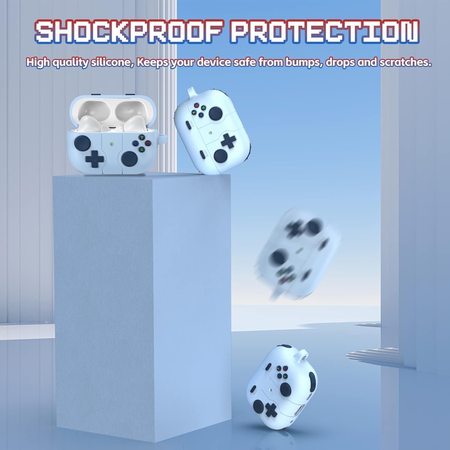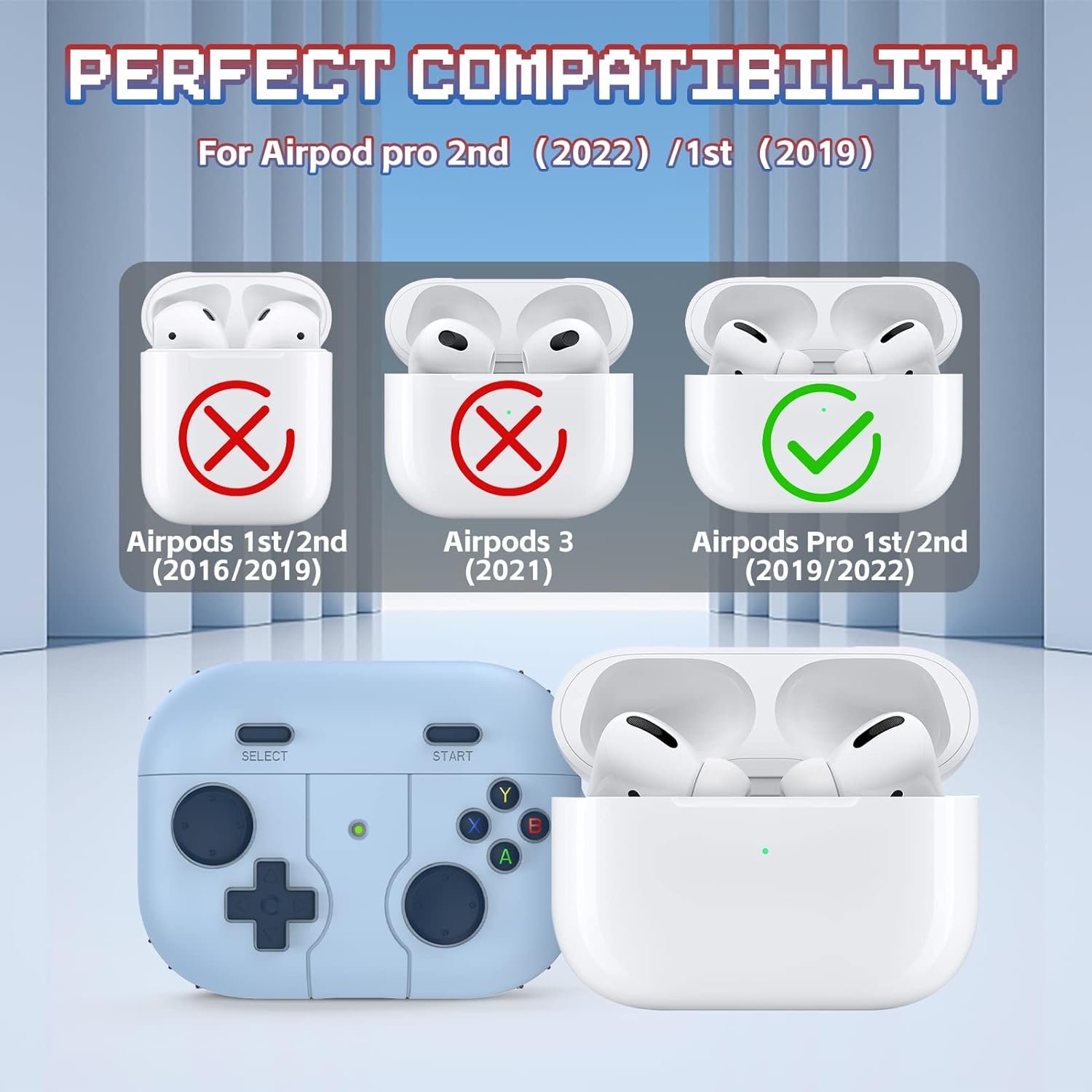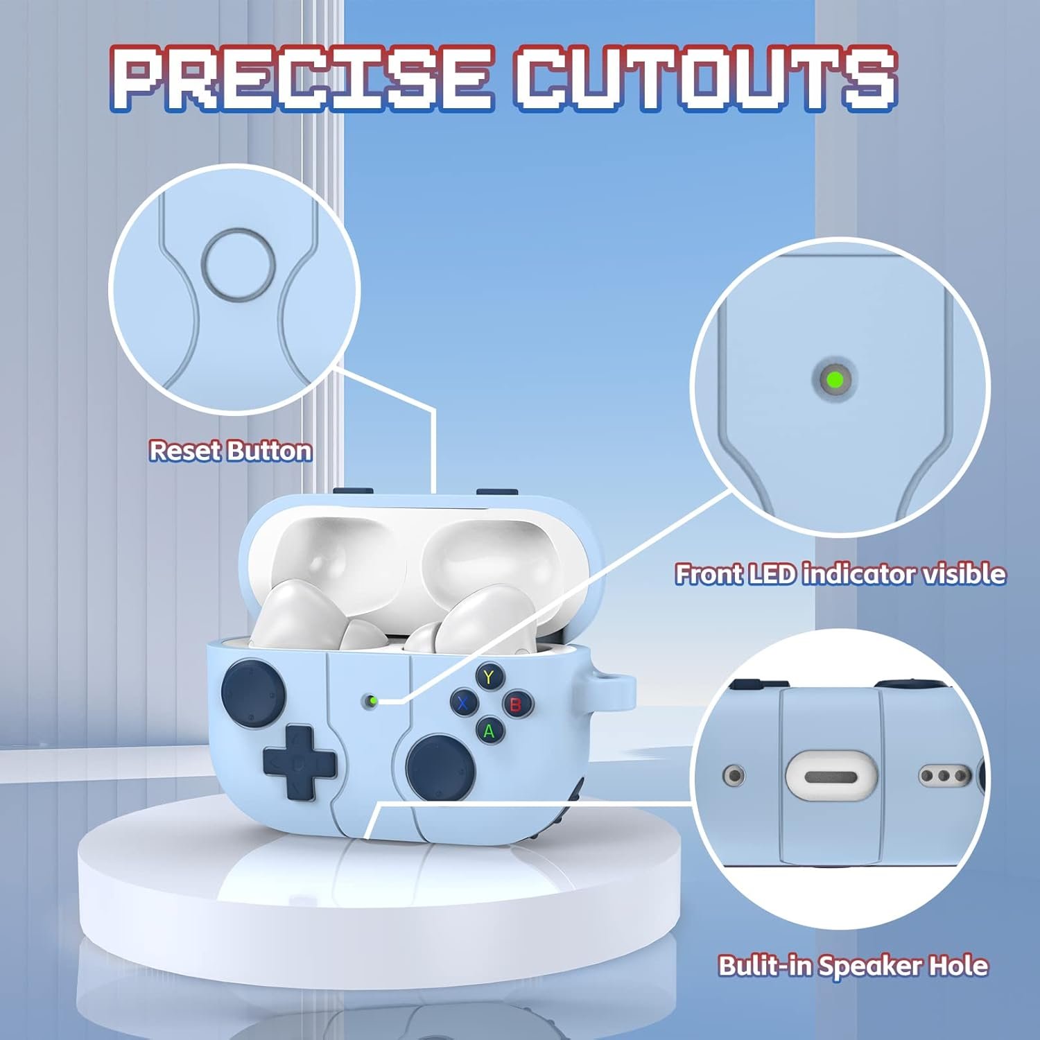 【Precise Cutouts & Convenient Charging】Gampad design cover set precise holes at the speaker, reset button and the front LED light visible. Supports wired and wireless charging without removing the AirPod Pro case.