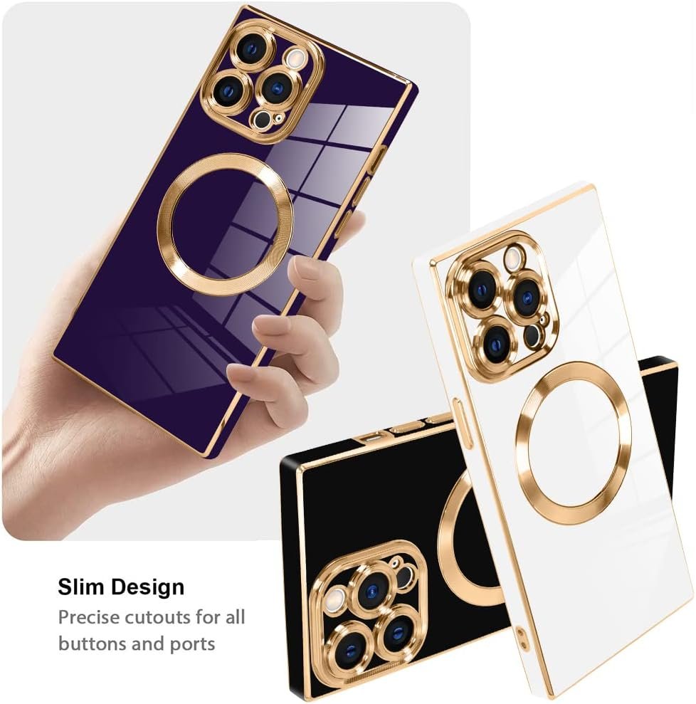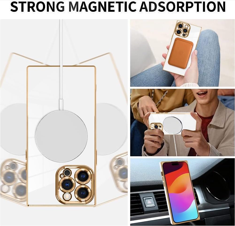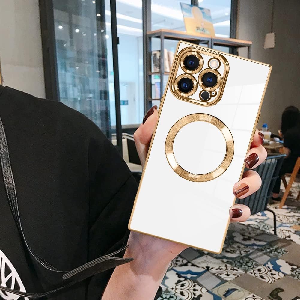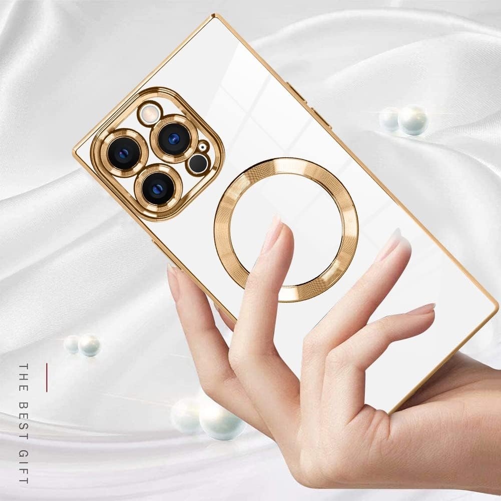 LSL Case for iPhone 15 Pro Max [Compatible with MagSafe] Soft TPU Bumper Anti-Drop Anti-Scratch Shock Absorption Protective Slim Luxury Plating Magnetic Cover for Women Girls Men – White