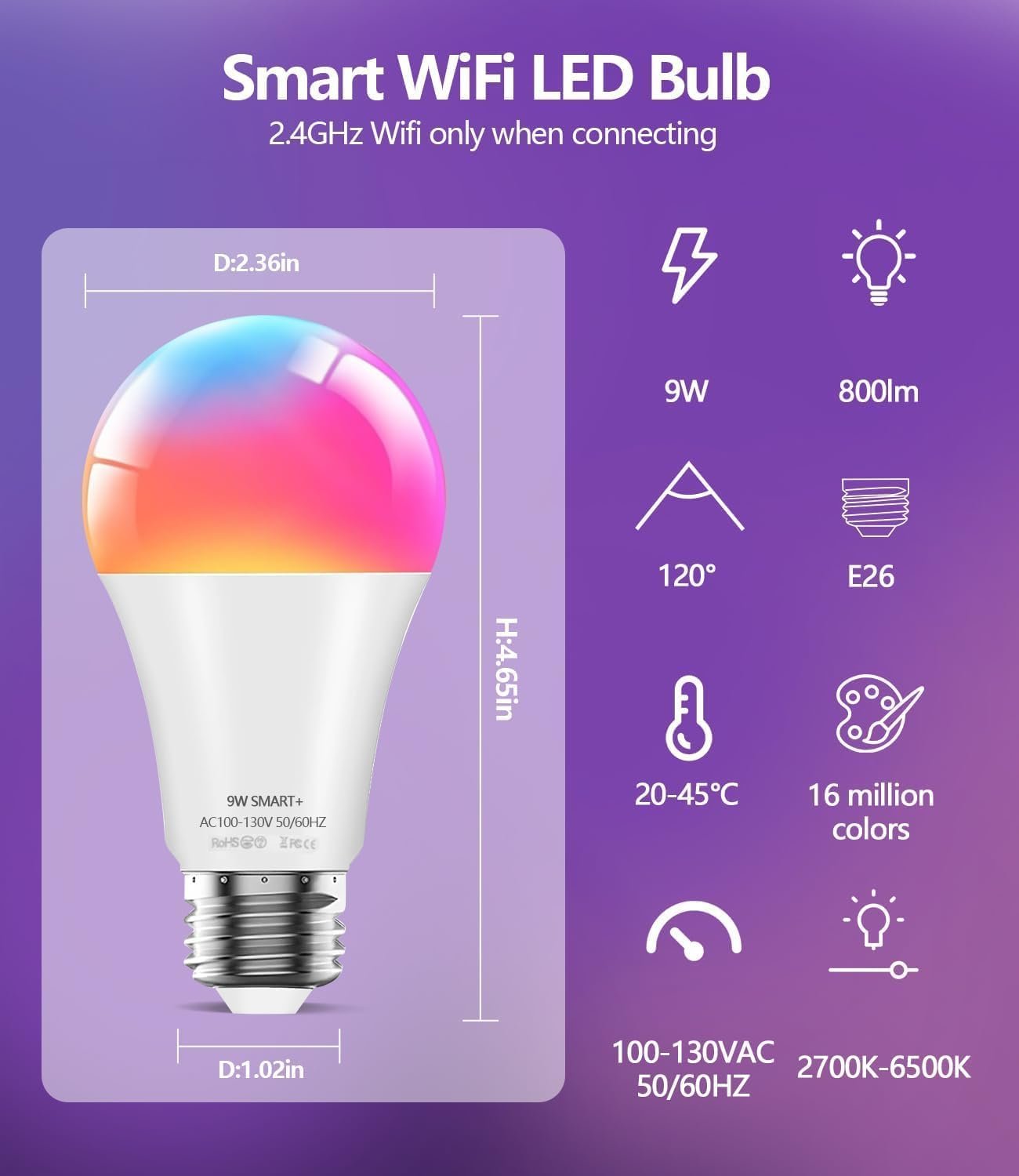 Quick and Easy Connection Alexa Light Bulb: It’s easy to connect led bulbs with Alexa, Google home devices via 2.4G Wifi. No hub required. Please follow the manual or instruction video to download Surplife App and adjust settings of smart light bulb to your need.