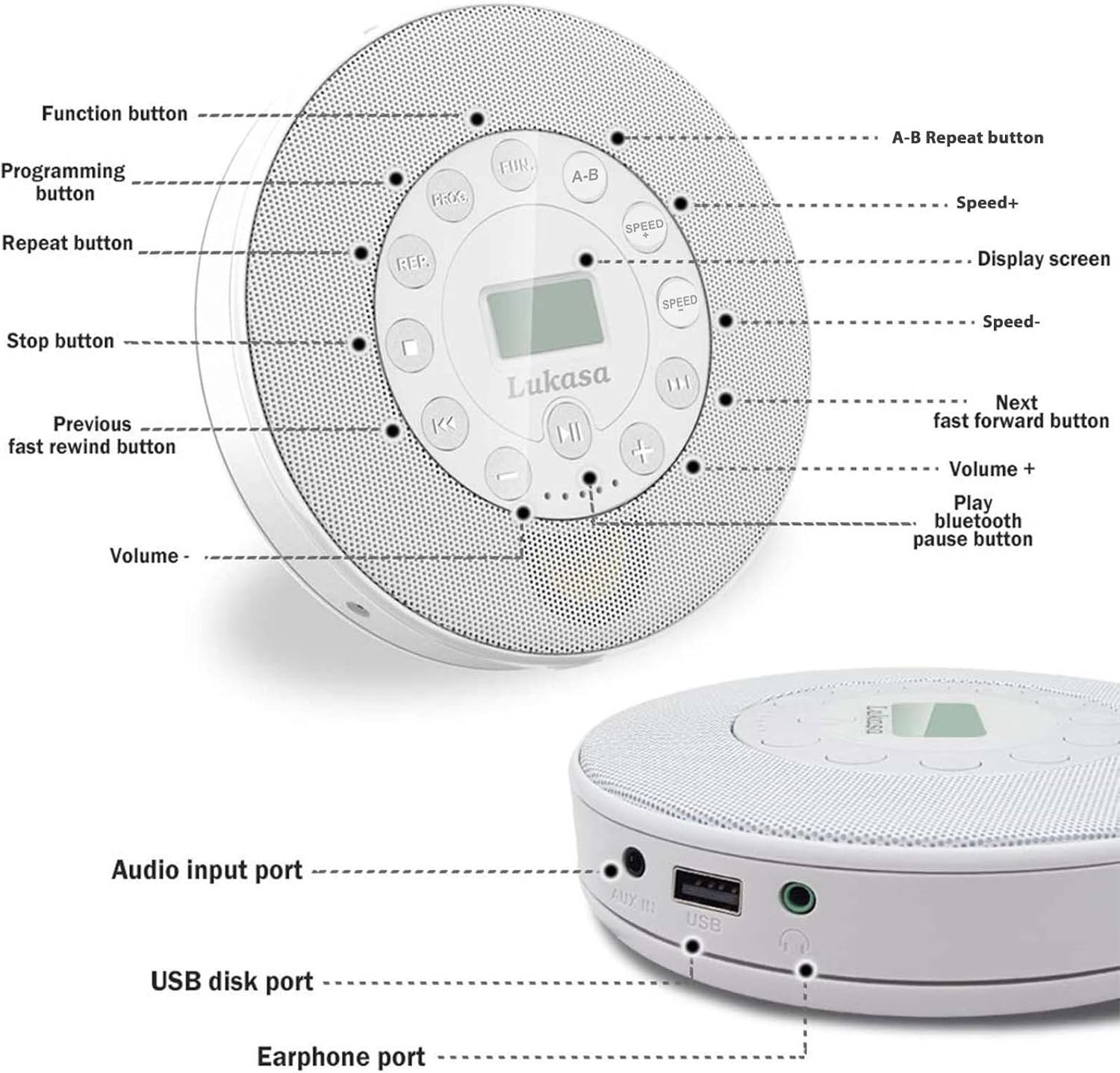 Perfect GFS : Lukasa music CD player is small and exquisite, graceful and fashion in appearance, smooth round and elegant looks, It’s a perfect gift choice for music enthusiasts, language learners, elders, kids, good friends and the expectant mother.