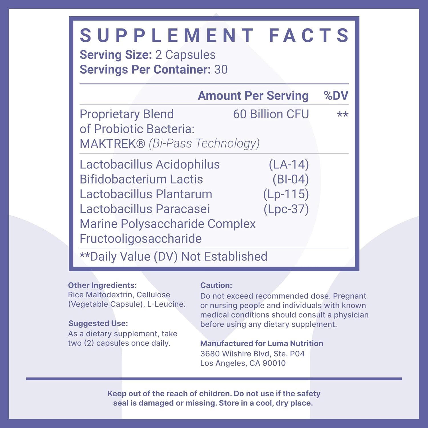 Be the first to review “Luma Nutrition Probiotics 60 Billion CFU with Prebiotics – Probiotics for Women – Probiotics for Men – Formulated for Digestive Health – 60 Capsules”