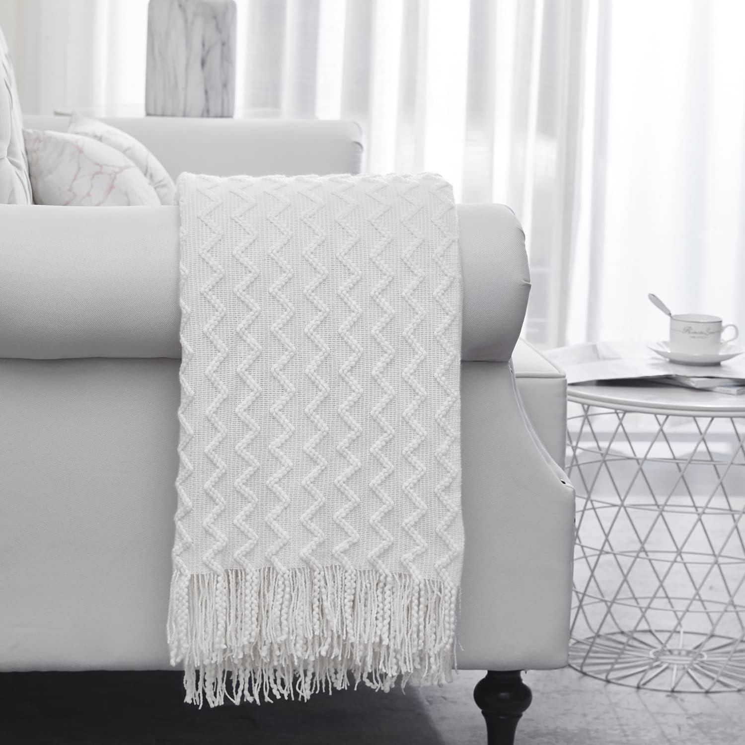 Lunarose Throw Blanket for Couch,Soft Cozy Knit Blanket,Lightweight Decorative Throw for Sofa Chair Bed Travel and Living Room-All Seasons Suitable for Women,Men and Kids (White-Wave, 50″x60″)