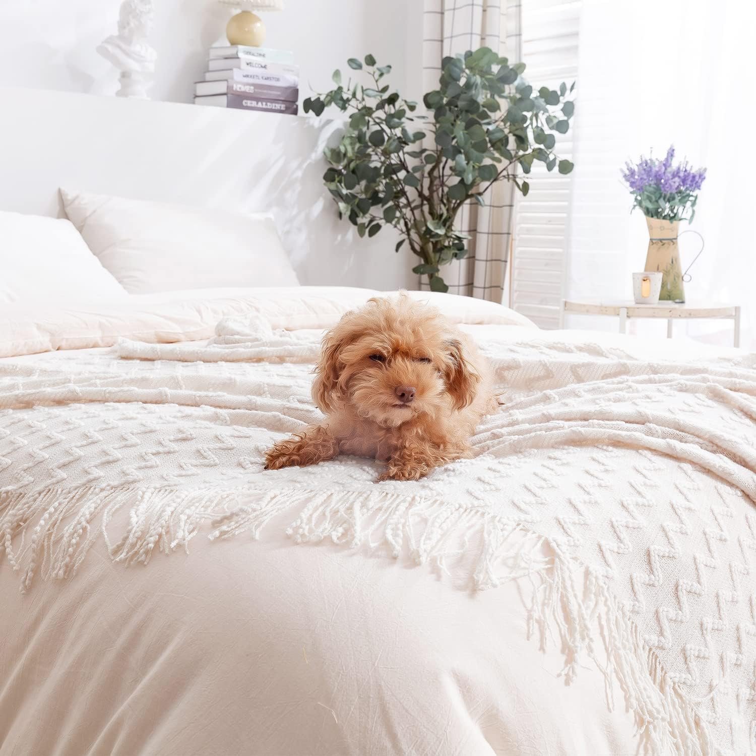 【Elegant Design】 Using high-speed weaving equipment, with high knitted density. Our knitted throw blankets, are skillfully crafted with a geometric pattern and rolled fringed edges for a beautiful finish,a versatile choice for all season.The high quality material make the blanket wrinkle and fade Resistant.The knit woven throw with tassel make you feel cozy and warm during nap time.