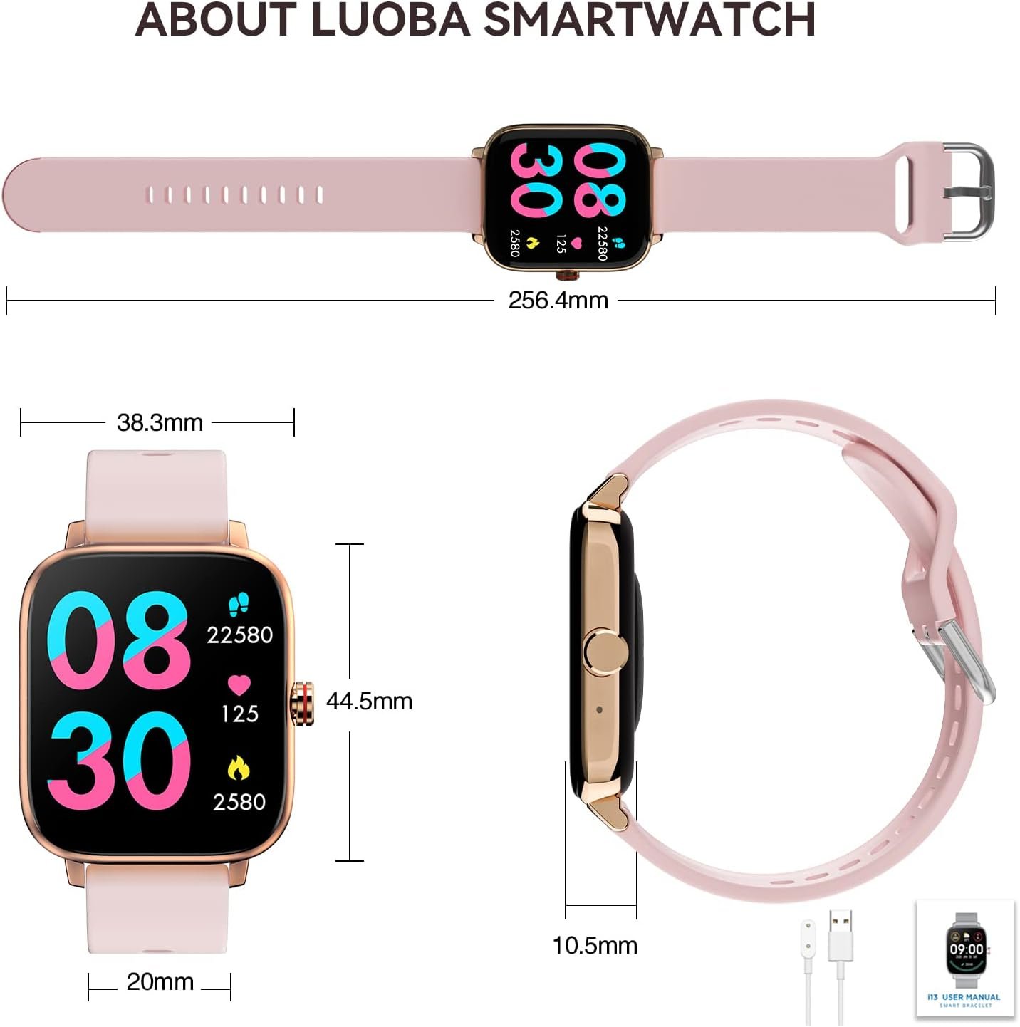 【Multi-functional Smart Watch for Women】-Luoba android smart watch,1.69 “full touch screen, custom dial, brightness adjustment, watch dial call. More smart functions, such as step count, calorie, stopwatch, music/camera control, weather forecast, breathing exercises, alarm clock, SMS/SNS notifications, sleep tracking, and more surprise features for your experience!