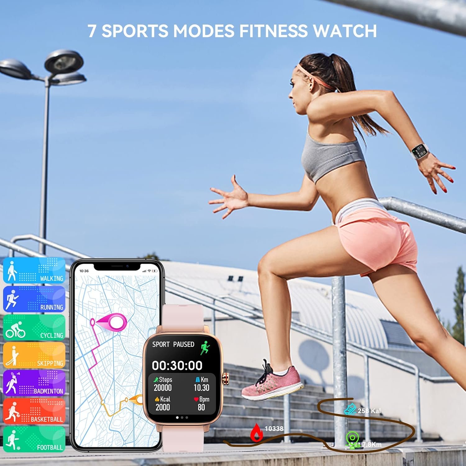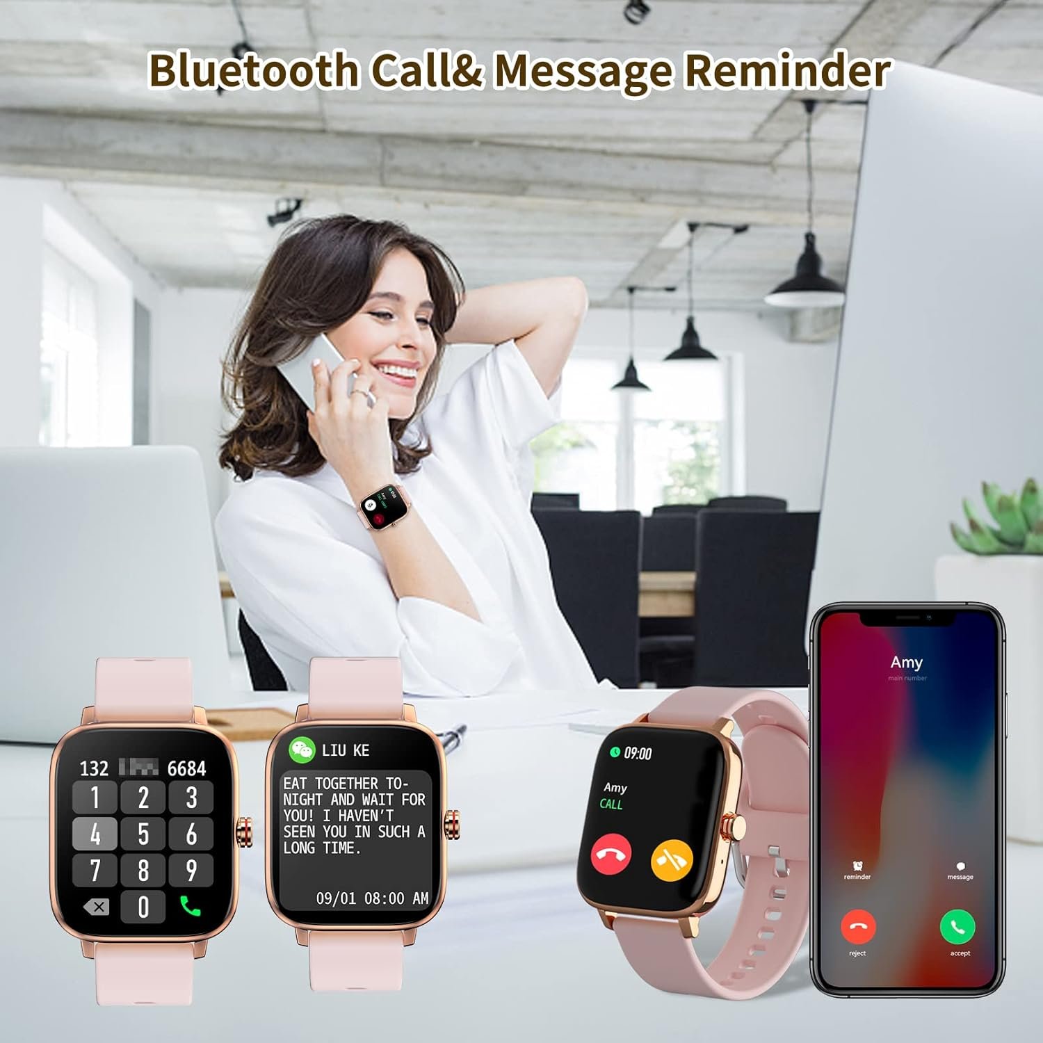 Luoba Smart Watch, 1.69” Full Touch Answer/Make Call Women Smartwatch for Android Phones Fitness Tracker with Heart Rate Sleep Monitor Calorie Step Counter Sports Fitness Watch for Android iOS, Pink