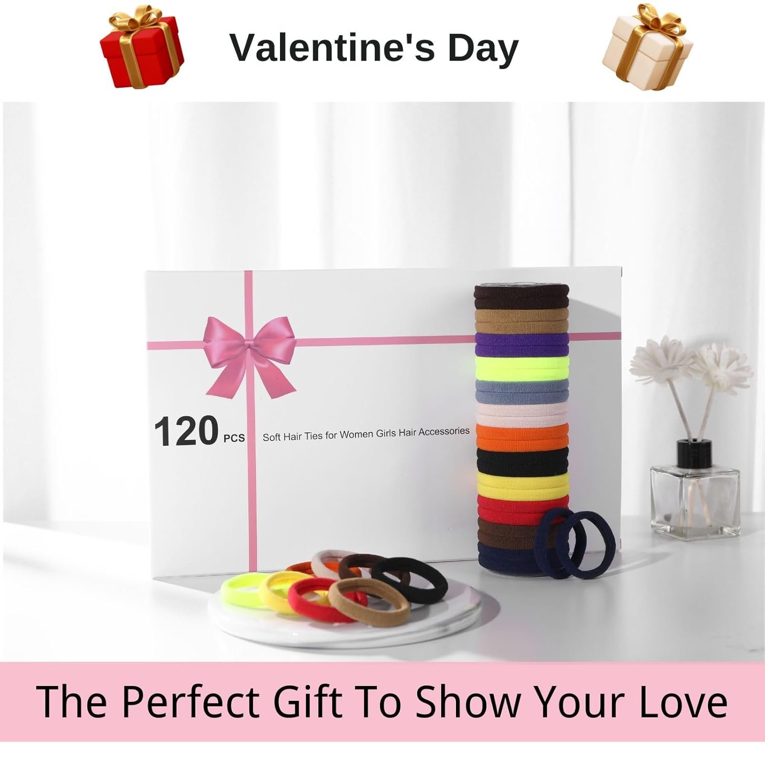 Versatile and Stylish: Our 120pcs hair ties are perfect for all hair types, making it easy to create elegant ponytails for any occasion, whether it’s a casual day out, a romantic Valentine’s Day date, or a special event. These hair ties come in classic colors, allowing you to effortlessly match them with any outfit for a chic and timeless look. Beautifully packaged in a premium gift box, they arrive in perfect condition, ready to impress your loved one. An ideal Valentine’s Day gift for her, these hair ties combine practicality with style, making them a thoughtful present for women.