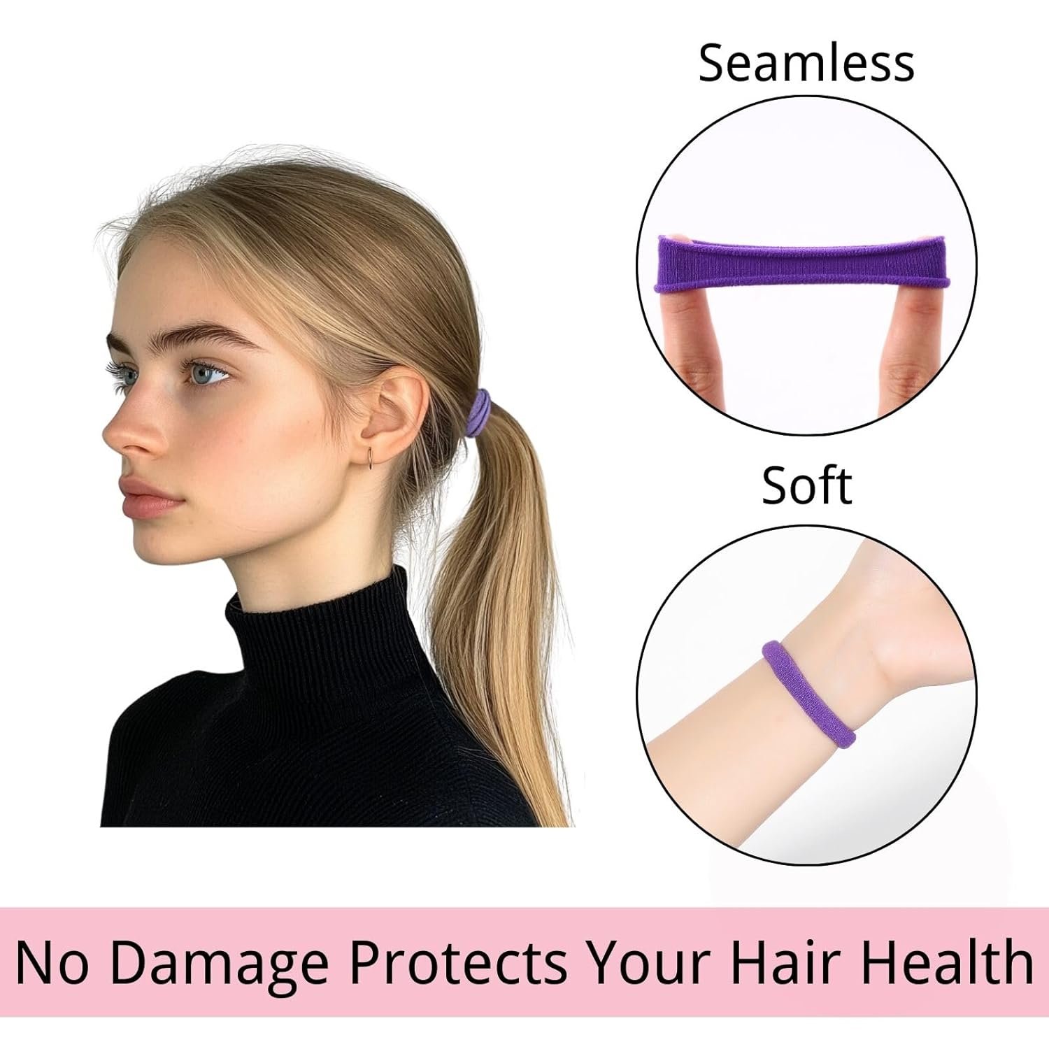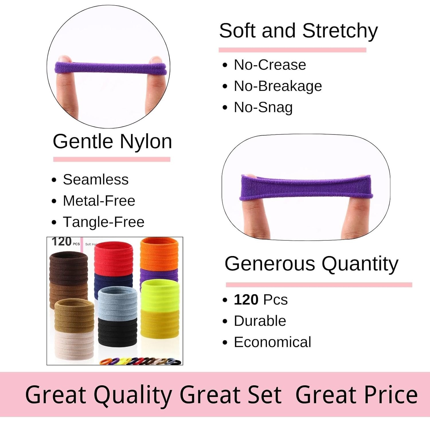 Gentle and Durable: Made of high elastic material, our no damage no pull hair ties hair bands are soft and stretchy, providing a secure hold without causing any damage to your hair. Say goodbye to snags and tangles!