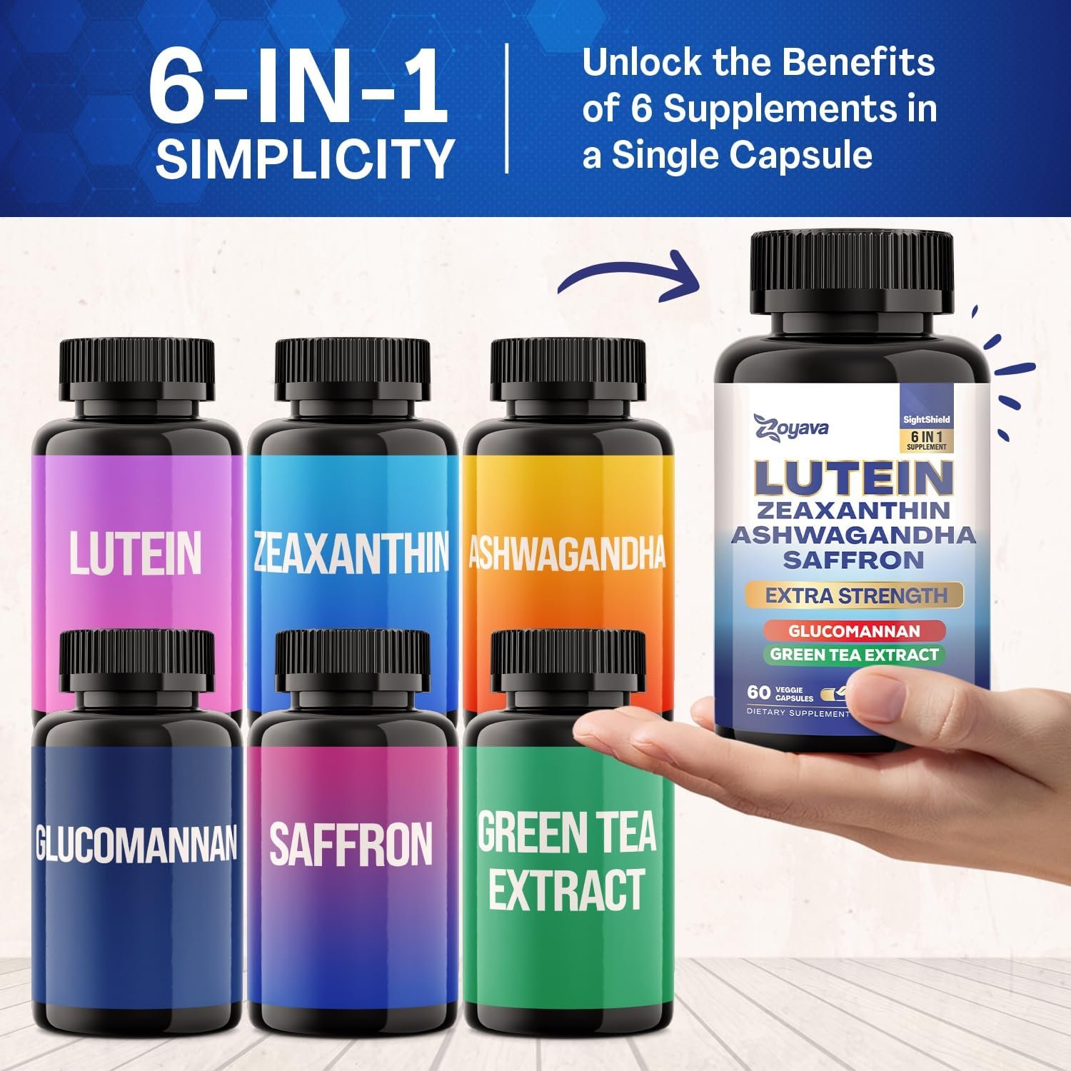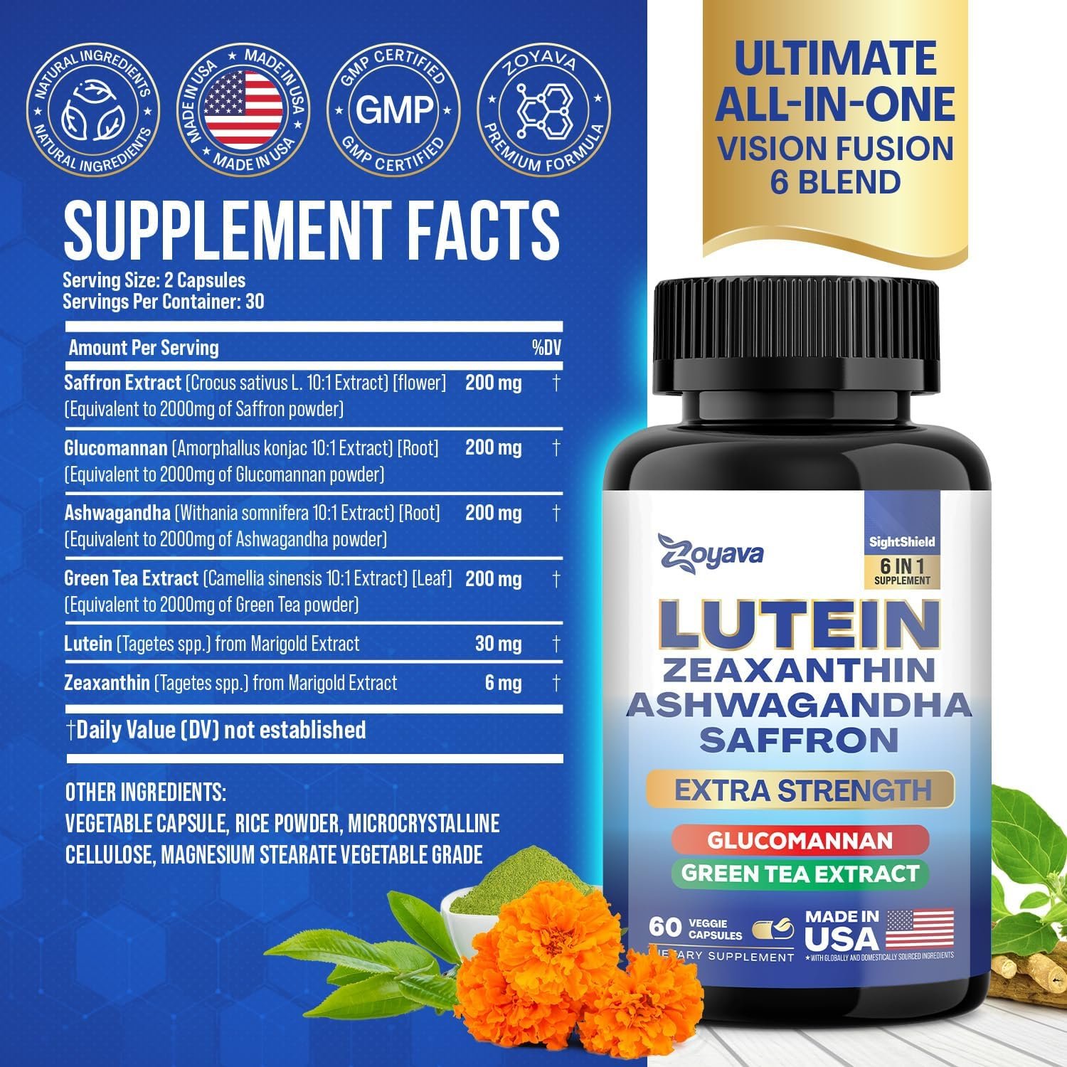 Discover the ultimate and advanced eye and vision support you’ve been searching for. Zoyava presents the perfect combination of eye supplements lutein. Vision Fusion 6 offers 6 beneficial ingredients in a single dosage. Unleash the power of ashwagandha vitamin, glucomannan, lutein capsules, all conveniently packed into just one capsule. Finally, the convenience you’ve been waiting for—lutein and zeaxanthin from marigold extract, ashwagandha powder, glucomannan supplement.