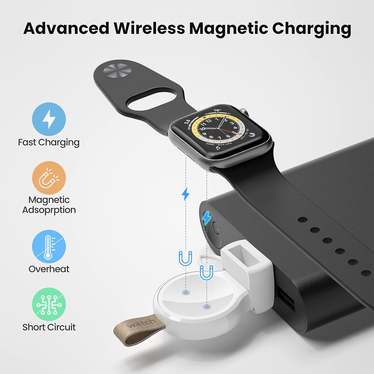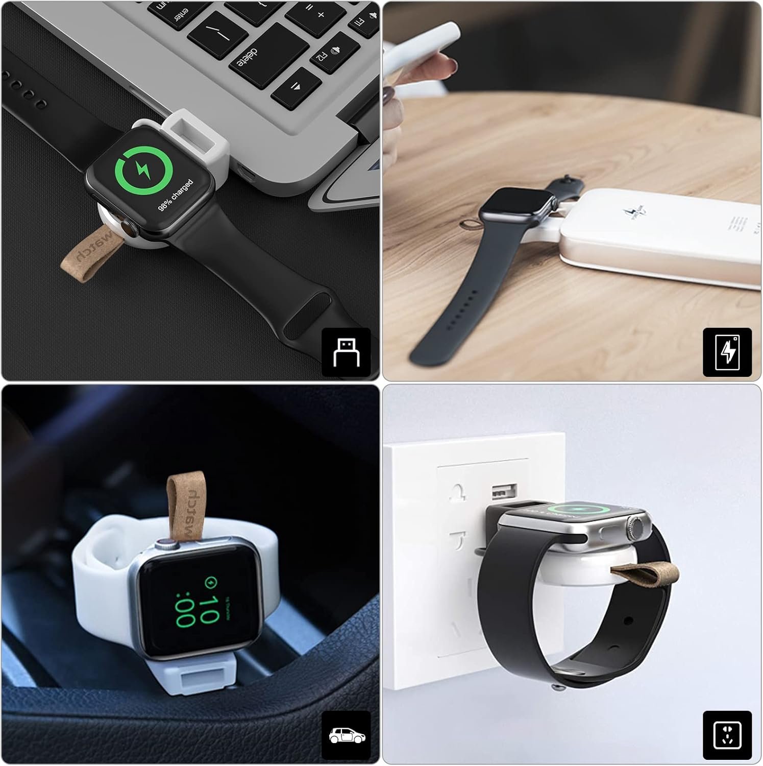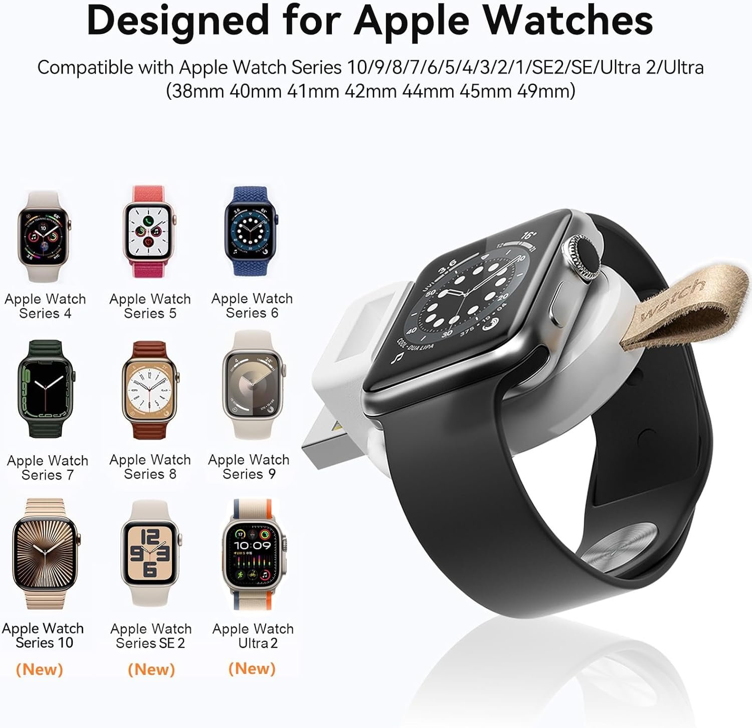【Designed for Apple Watch】 This portable charging dock for apple watch built-in strong magnetic wireless charger. Compatible with Apple Watch Series 10 9 8 7 6 5 4 3 2 1 SE Ultra 2 Ultra 49mm 45mm 44mm 42mm 41mm 40mm 38mm (NOTE: NOT A Watch POWER BANK).