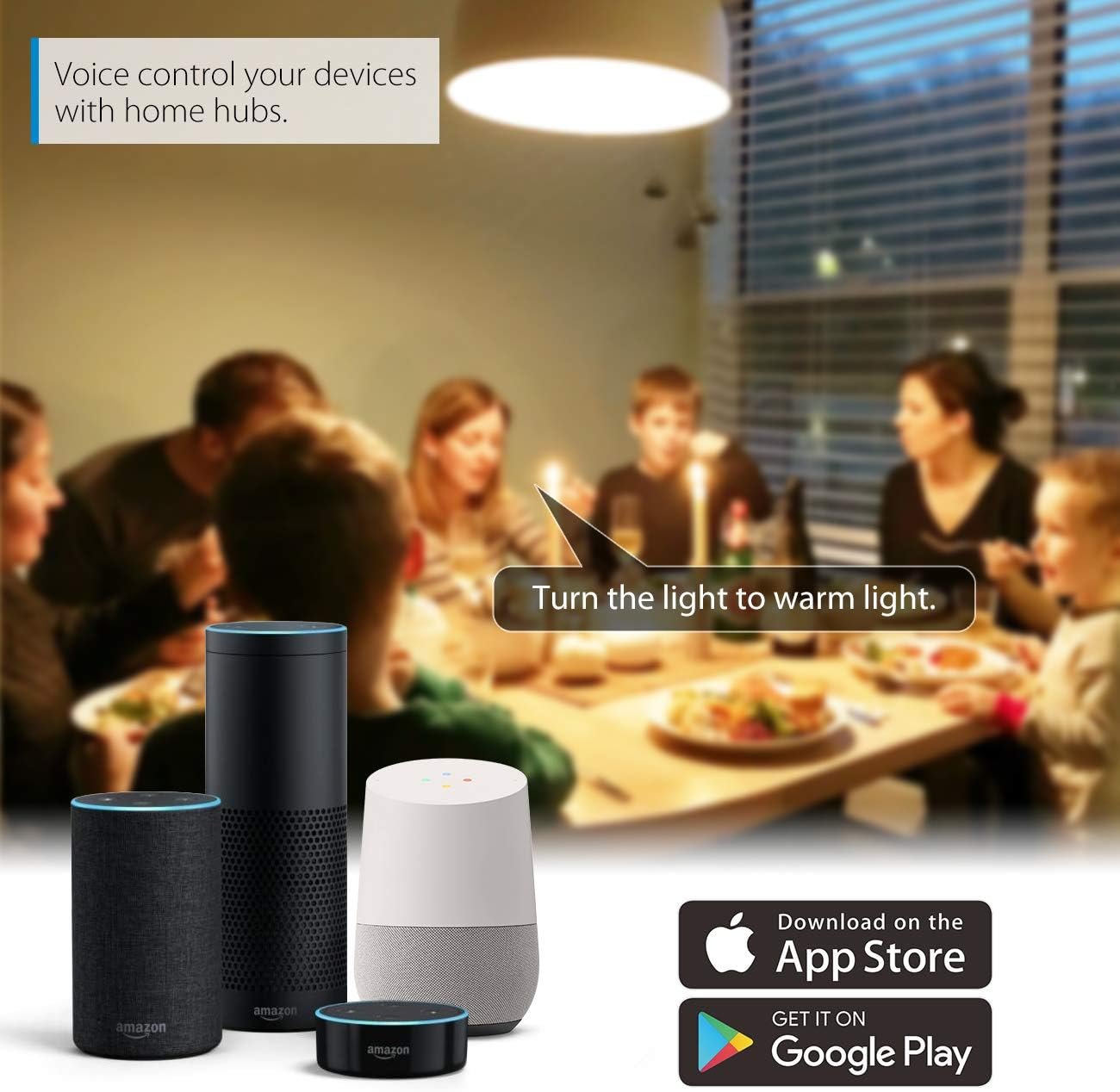 【Voice Control】 Control your smart bulb via your voice with Google Assistant and Amazon Alexa. Just give a voice command to turn on/off or dim/brighten your light, even switch your light to specific color as you need.
