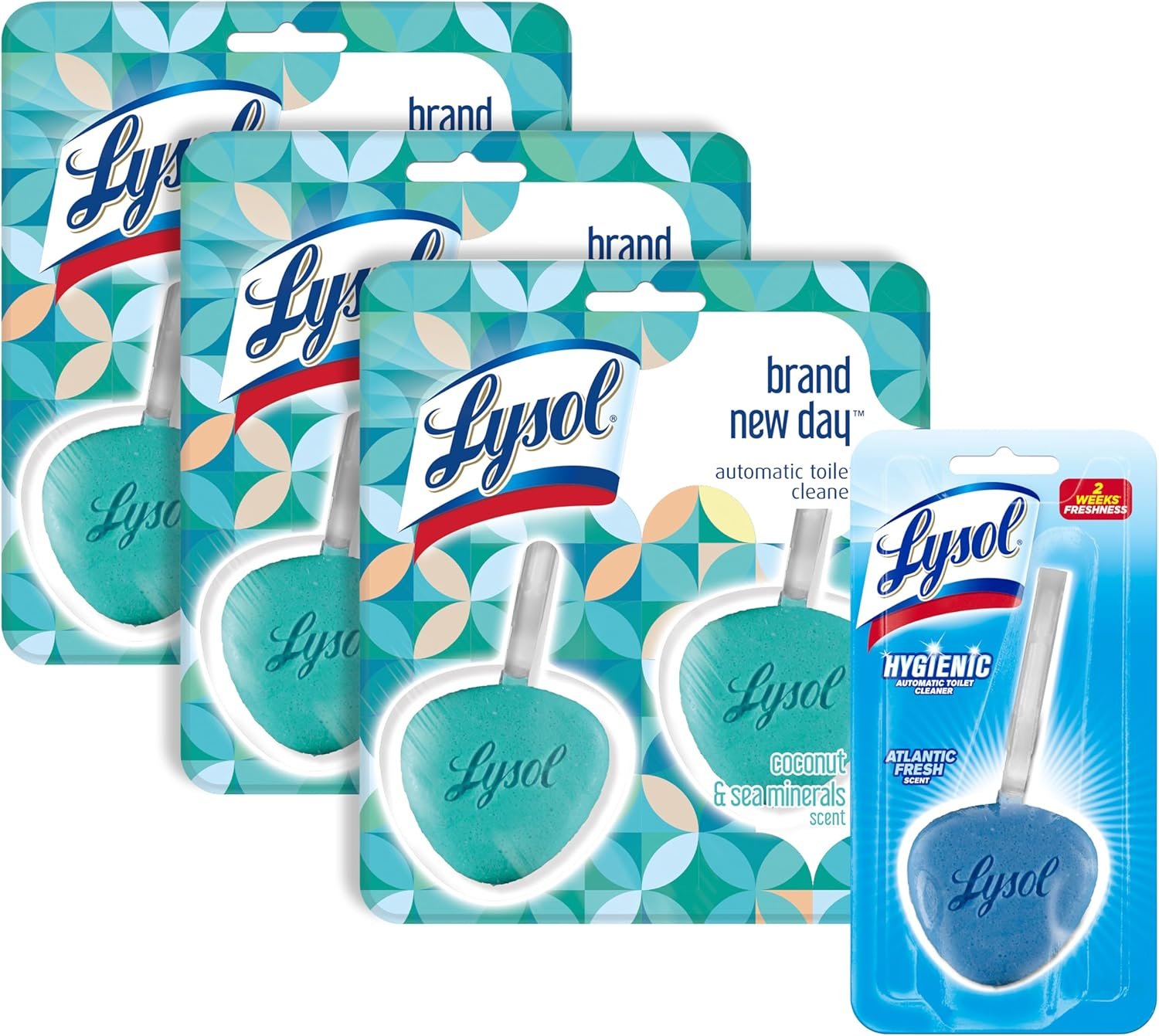 Lysol Hygienic Automatic Toilet Bowl Cleaner hangs on the inside of the toilet bowl to help you maintain a Complete Clean between deep cleaning your toilet bowl. It not only cleans your toilet bowl with every flush, but it also freshens your entire bathroom . They last for up to 8 weeks, and are easy to use! It contains antimicrobial protection in the hook to resist odor causing bacteria.