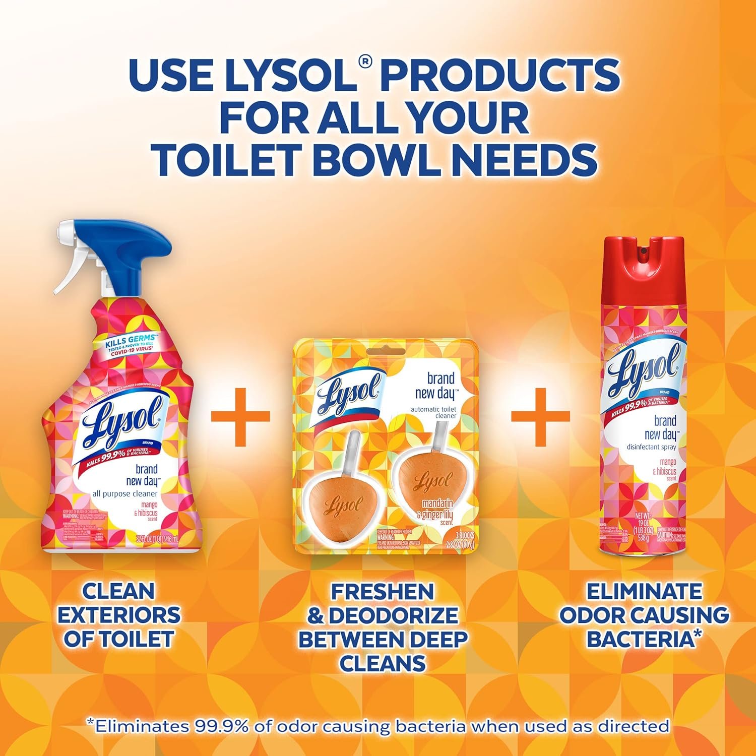 Lysol Automatic Toilet Bowl Cleaner – Mandarin & Ginger Lily, 2 count (Pack of 3)