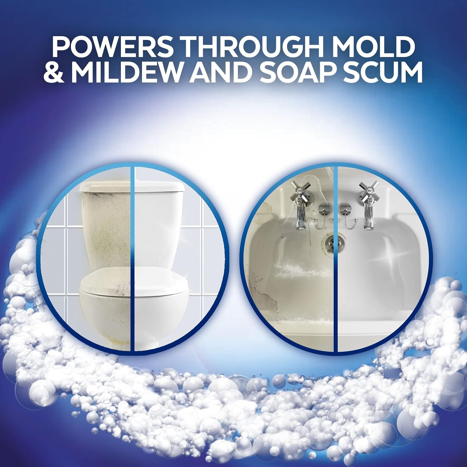 Powerful Bathroom Foam eliminates soap scum, limescale and everyday dirt and grime with no scrubbing