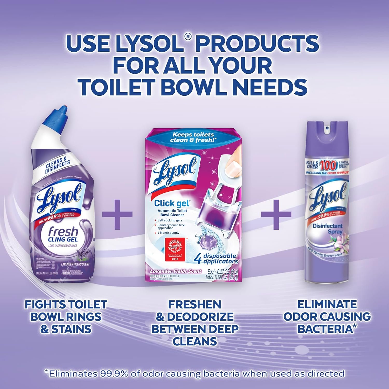 Lysol Click Gel Automatic Toilet Bowl Cleaner, For Cleaning and Refreshing, Lavender Fields, 6 Applicators (Pack of 2)