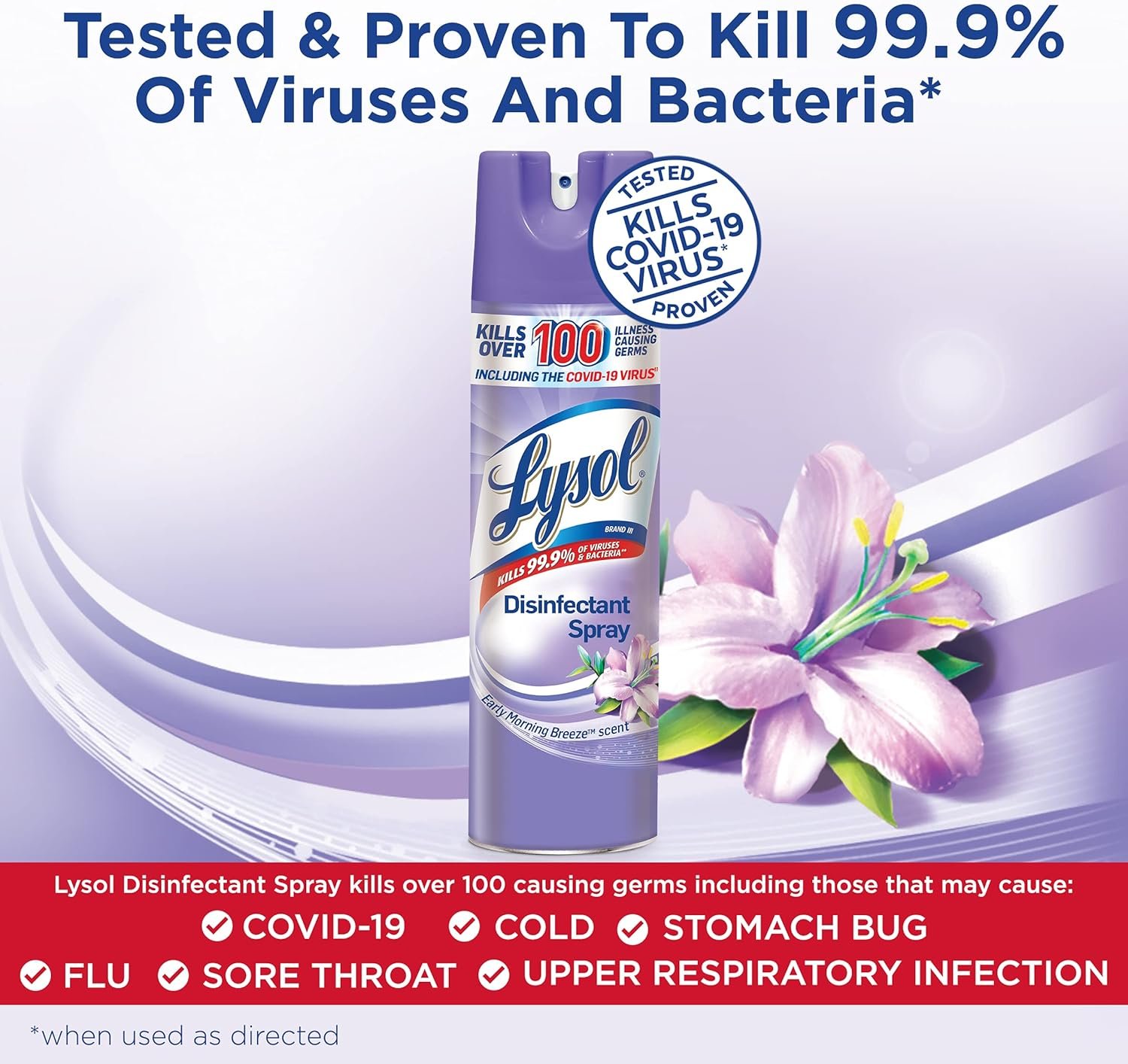 Lysol Disinfectant Spray kills 99. 9% of viruses and bacteria.