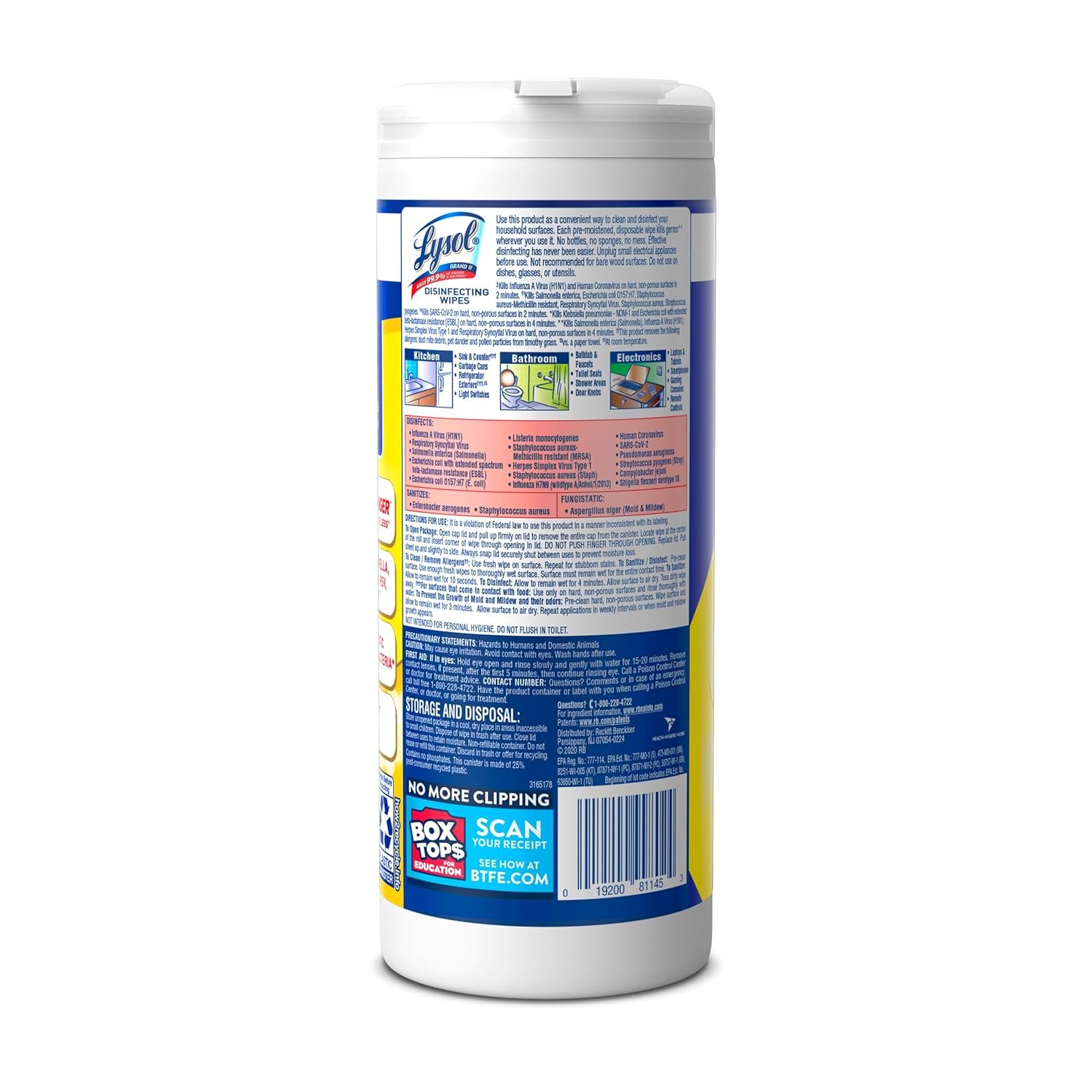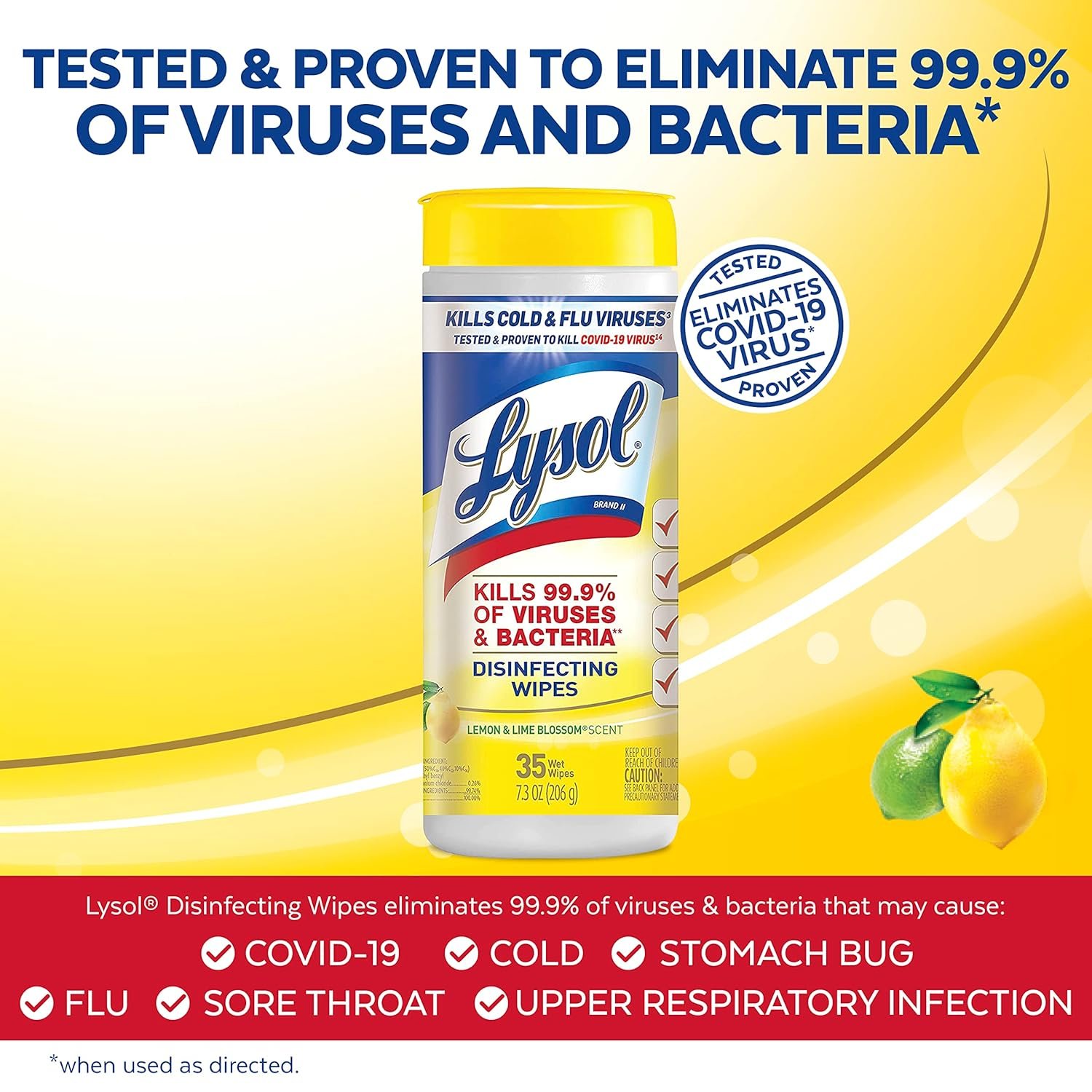 DISINFECTING WIPES ELIMINATE 99.9% OF VIRUSES AND BACTERIA: Lysol Disinfecting Wipes are tested and proven to clean and eliminate 99.9% of viruses and bacteria, including 8 cold and flu viruses* (when used as directed)