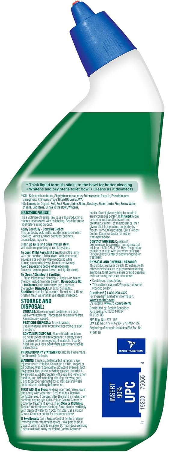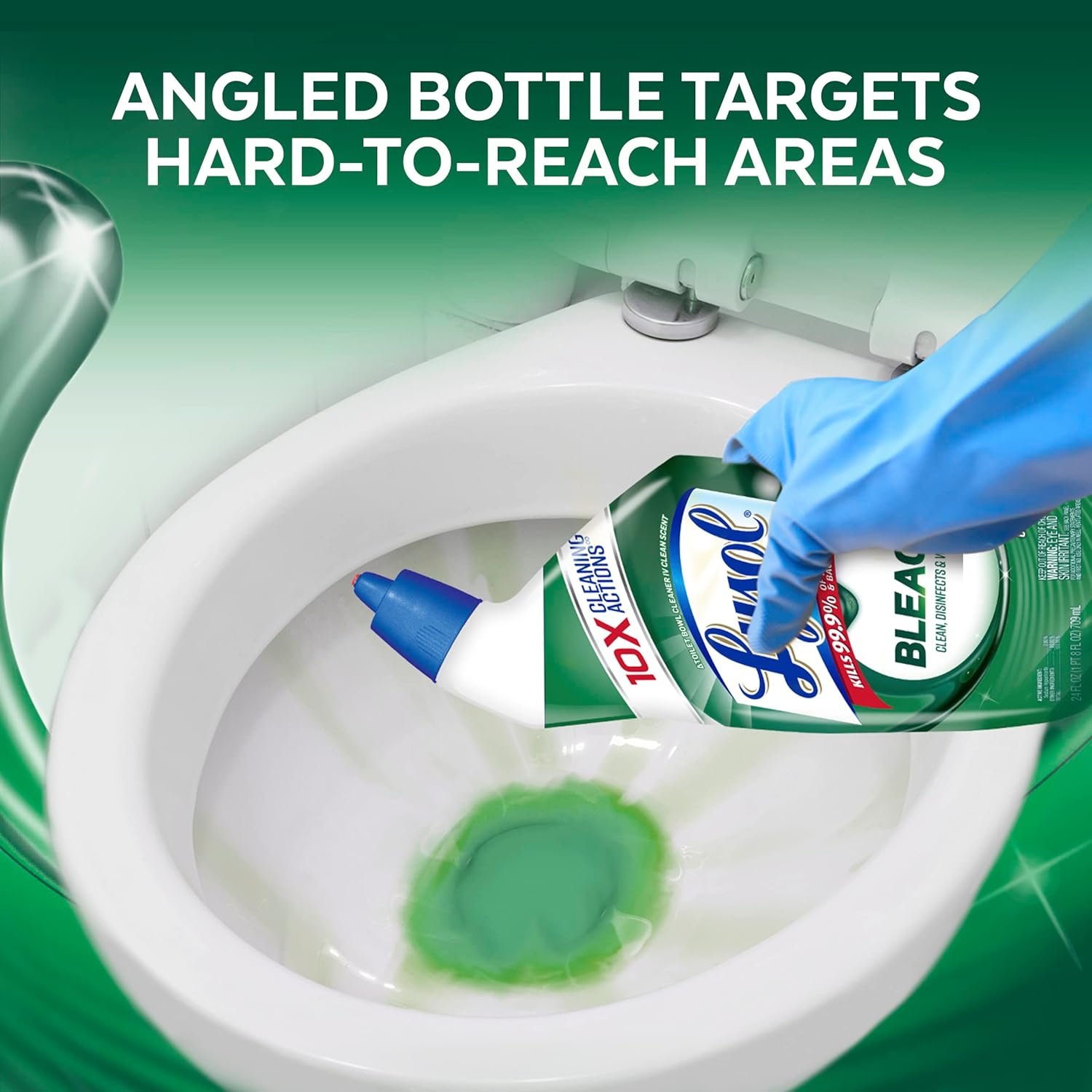 Lysol Toilet Bowl Cleaner with Bleach brightens, cleans and disinfects your toilet bowl. Most bathrooms can be a breeding ground for germs, but Lysol Toilet Bowl Cleaner provides peace of mind. The thick formula clings to the bowl, brightening your toilet as it cleans and disinfects. The angled bottle targets hard-to-reach areas, including under the rim, leaving your entire toilet bowl sparkling clean, deodorized, and disinfected.
