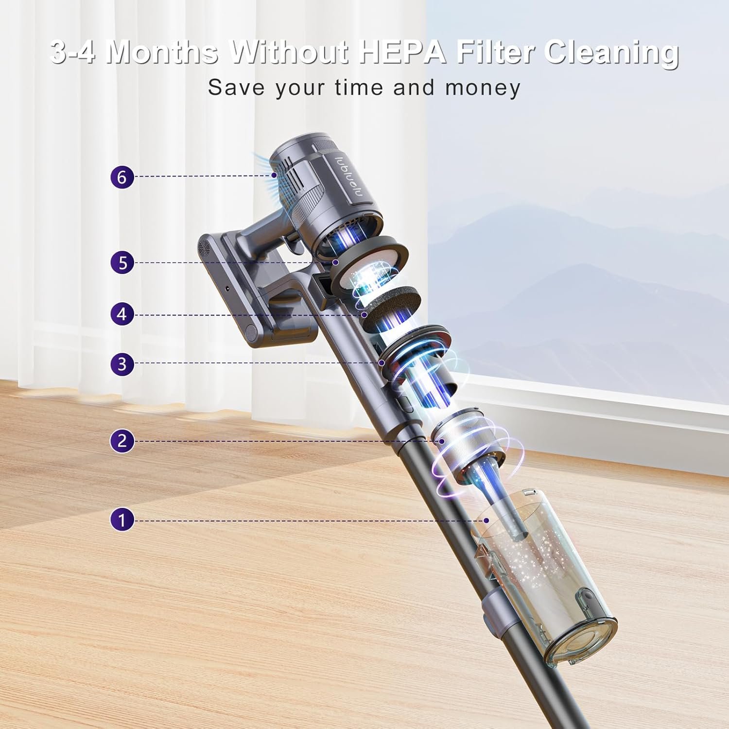 【MIUZZY FADE-FREE SUCTION POWER】MIUZZY vacuum uses advanced technology to efficiently filter out airborne particles and particulate matter, ensuring maximum suction power without any reduction in performance. With our cutting-edge system, you won’t have to clean the HEPA filter for up to 2-3 months, saving you time and hassle.