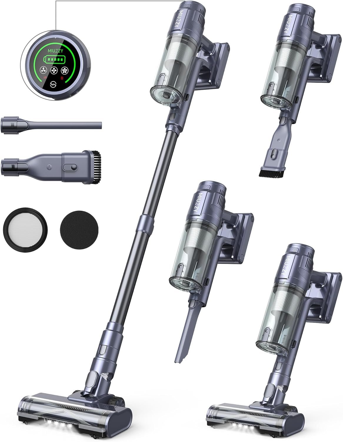 【Flexible LED Touchscreen 】The MIUZZY LED display screen shows real-time information such as brush clogging,dust cup fullness,warning and suction mode. Independent LED indicator light on the battery indicates the remaining power.suitable for everyday use around carpet and pets.