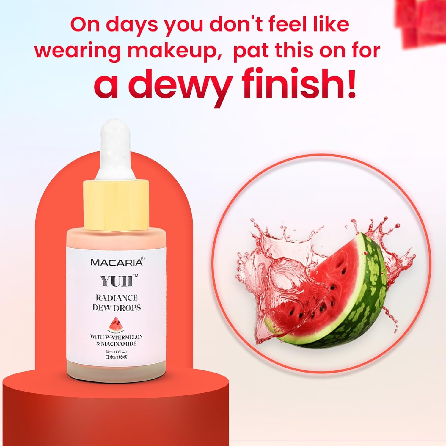 Hydration and Moisture: Infused with watermelon fruit extract, niacinamide, and sodium hyaluronate, our dew drops deeply hydrate and moisturize the skin, leaving it refreshed and rejuvenated.