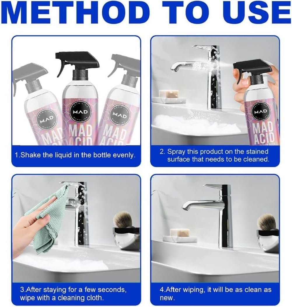 Mad Acid Glass Cleaner, Mad Acid Heavy-Duty Wheel Cleaner, Mad Acid Cleaner for Bathroom, Car, Furniture, Easily Remove Hard Water Spots from Windows, Hard Water Spot Remover for Car