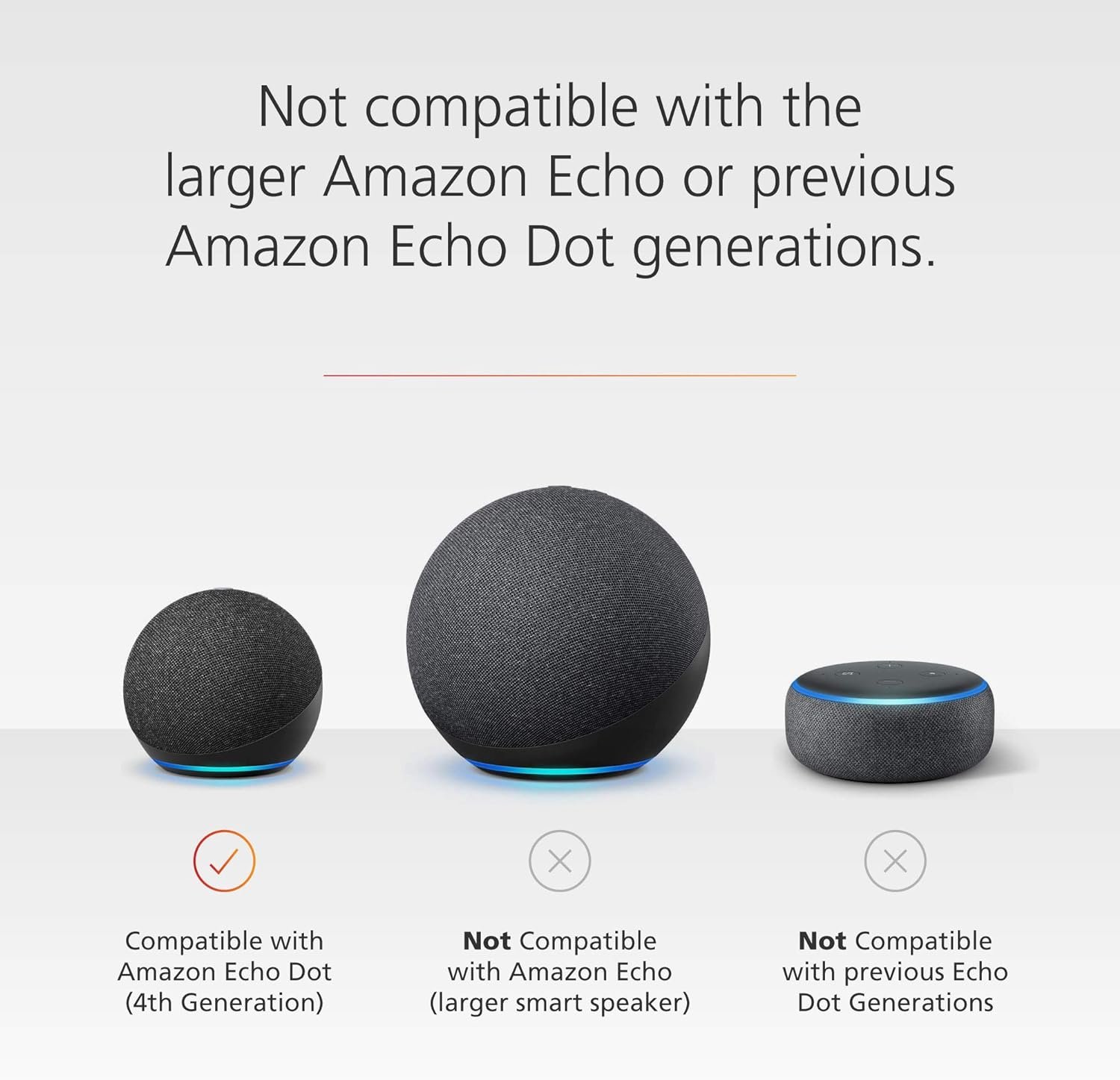 Not compatible with previous generations of Echo Dot (1st Gen, 2nd Gen, or 3rd Gen) or Amazon Echo (larger device).