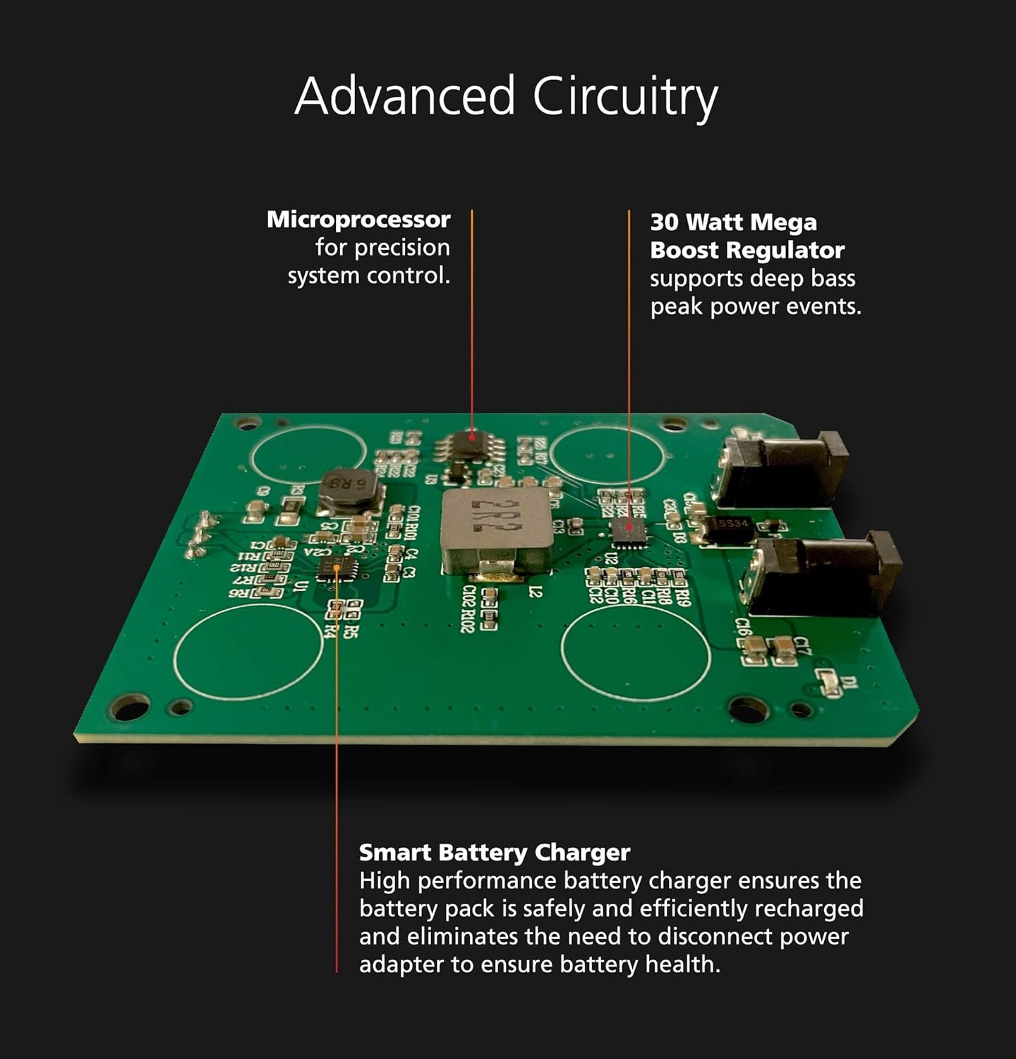 Enjoy your music away from the power outlet with integrated battery lasting up to 5 hours.