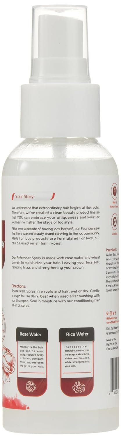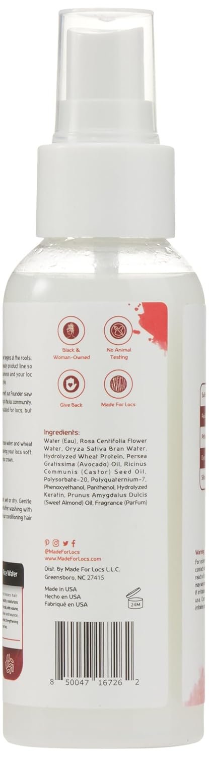 Oryza Sativa (Helps with Breakage: Dry locs are more prone to breakage, which can be frustrating for anyone looking to grow out their hair. A moisturizing spray helps to prevent breakage by strengthening the hair and reducing the risk of split ends.) Bran: Stimulates blood flow to the scalp and proper healing, which affects scalp health and dandruff control.