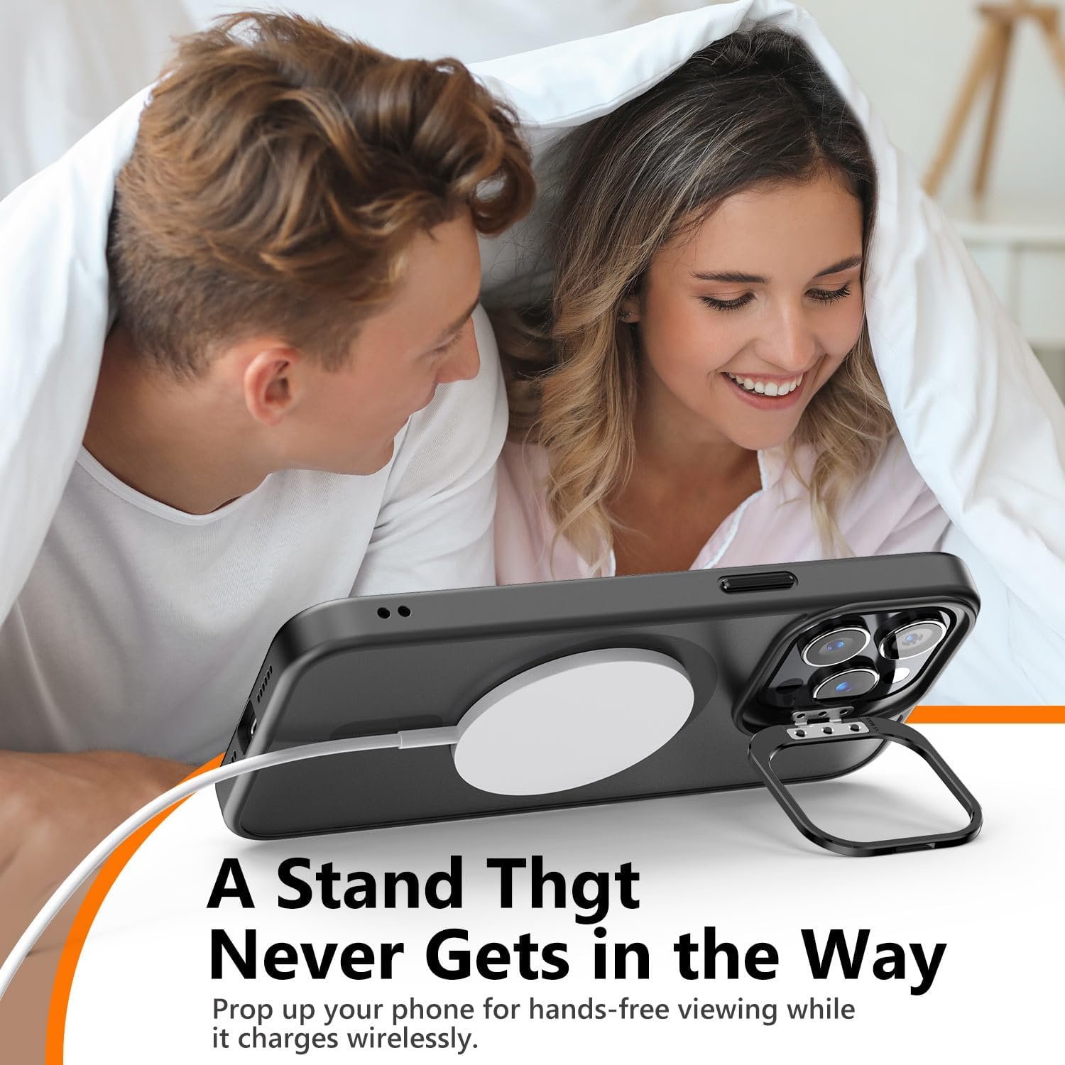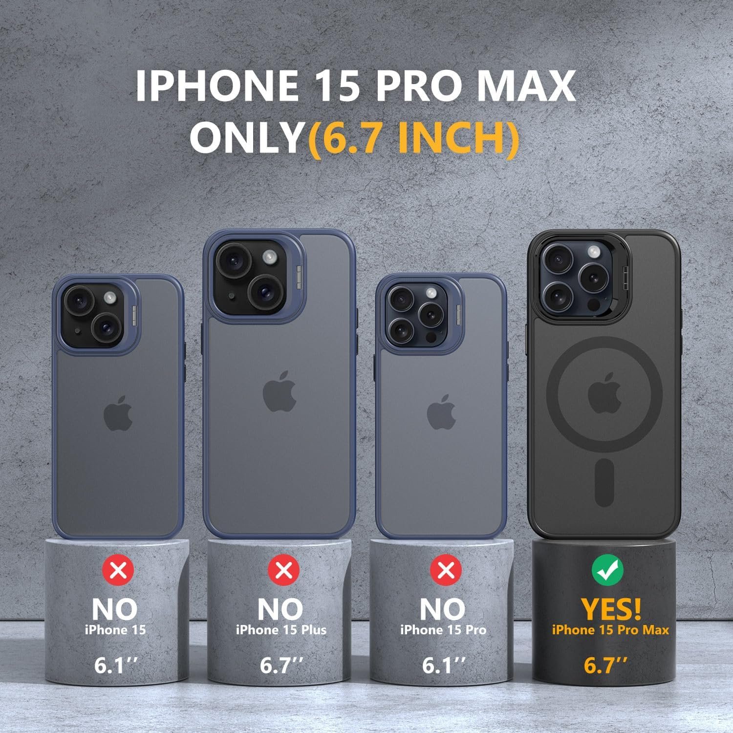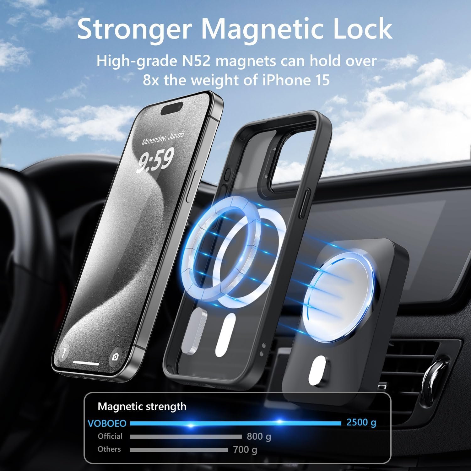 【Real Tested Ultra Magnetic Suction】This iPhone 15 Pro Max Case have built-in 1.5mm thick N52 magnet. After a experimental testing. The data show It has a magnetic attraction of 1500g/3.3bl, which is nearly 7 times stronger than normal magnetic case on the market. Attaches securely to all Magnetic accessories such as wireless chargers, wallets, car mounts and will not come off no matter how much it is rotated or shake.