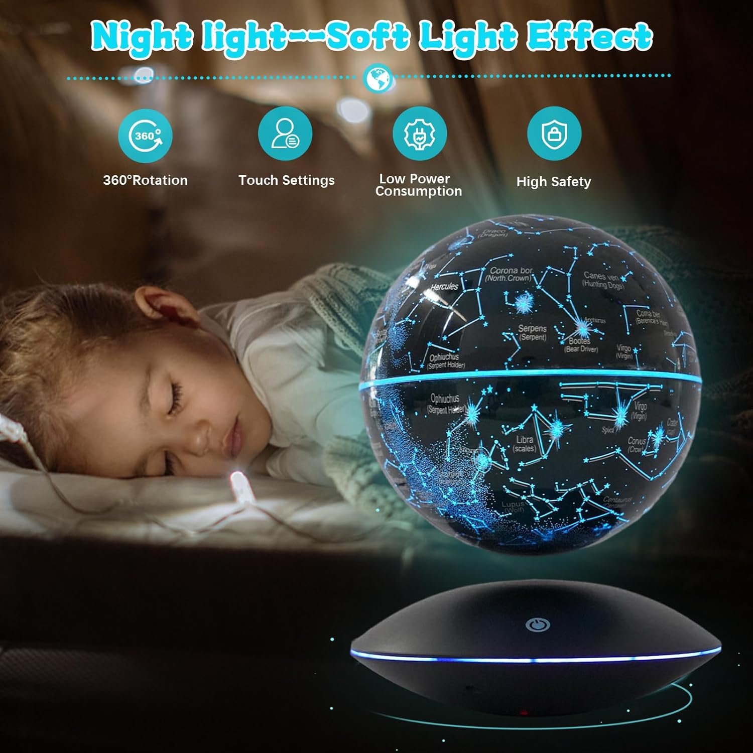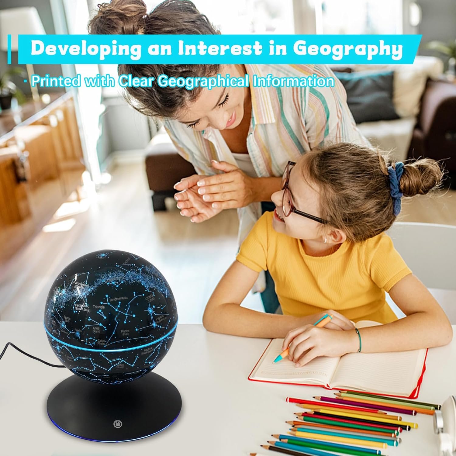 𝐆𝐥𝐨𝐛𝐞 𝐒𝐢𝐳𝐞: This magnetic globes floating globe 6 inches in size can be used, rated at 5-10W to teach geography and learn about the earth and the geographic location of each country.