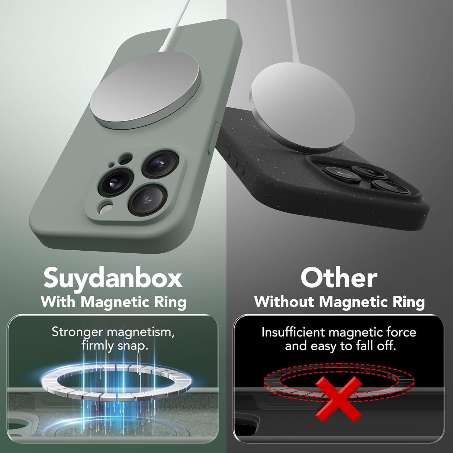 [Military-Grade Drop Protection] SuydanBox for iPhone 15 ProMax Shockproof case, tested by continuous drop tests of multiple angles by SGS, is certified to be professionally protective. The shock-absorbent corner bumper in the silicone shell effectively disperses impact forces, while the sturdy PC back absorbs any remaining shocks. Screen lip keeps the delicate surface of your phone raised and protected.