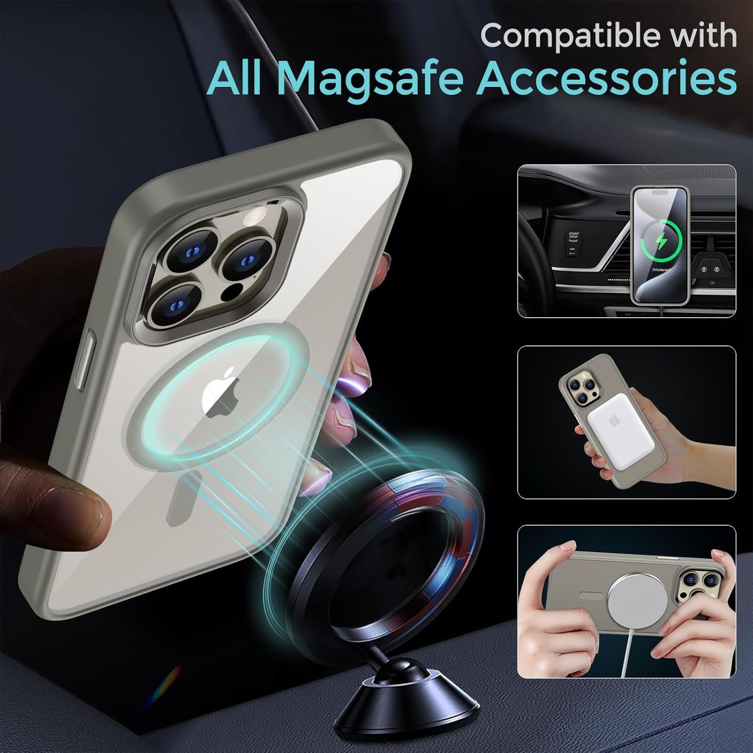 Magnetic for iPhone 15 Pro Max Case,Compatible with MagSafe,[Military-Grade Drop Protection] Soft TPU & Crystal Clear Case for iPhone 15 Pro Max Phone Case 6.7″ (Titanium Gray)