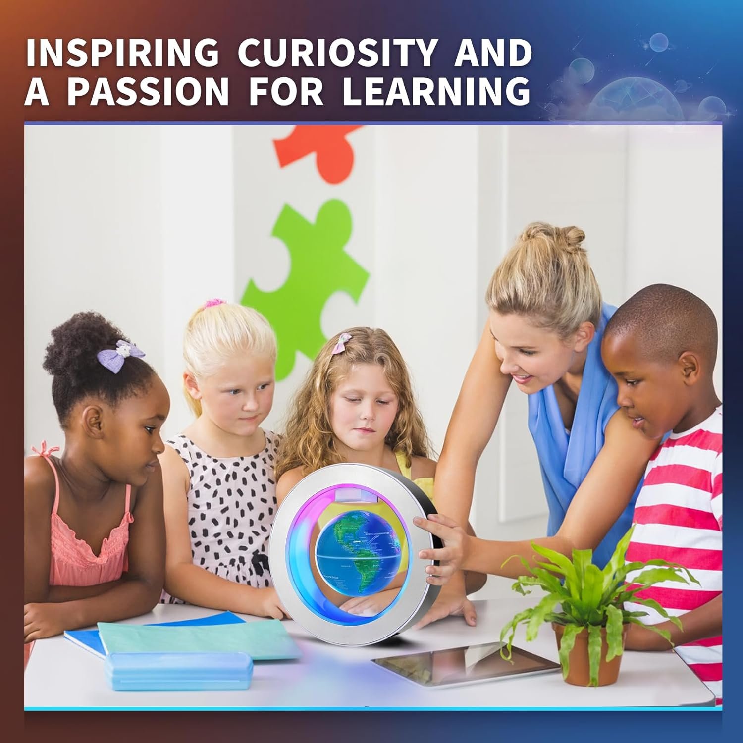 🌎COLOR CHANGING LED LIGHTS: Our floating globe features multi-colored LED lights and the sphere automatically cycles through different colors. The changing lights of the globe are very cool when working in the dark. It adds a dynamic and captivating atmosphere to tabletop and space decor, making it an ideal conversation piece at parties.